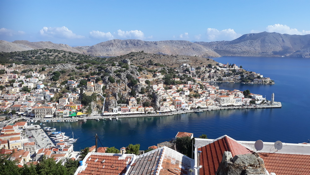 You might also note that the day was sunny and calm, and the harbour is still more or less boat-less. There’s one large cruiser in this morning (Thursday), and a smaller private yacht. There have been white sails out at sea, and some have pulled in for an evening. The main ferries continue to call in and out. There have also been some arrivals, but I don’t know where from or for how long they are staying. The first shoots of recovery, perhaps, but there’s a long way to go yet.
