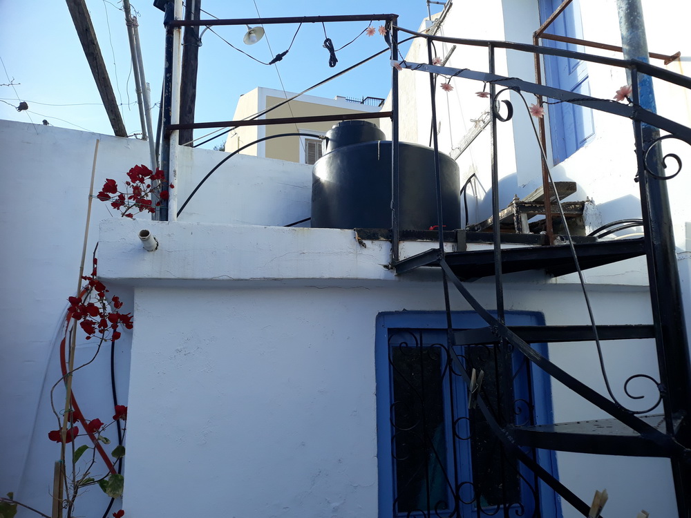An hour and a half later, after some clanking and shuffling about on the roof, he called me, and we tested the water by turning on the tap in the laundry sink. No water. A bit of head scratching, testing of other taps and back he went to figure things out. A little later, he was back, and we tried the kitchen, giving the open tap some time to run while the water filtered through the pipes… and worked. We tried the hot, and that worked too. Mild merriment. Only mild because there’s not a lot of pressure, and he explained (and better, I understood) that without a pump the pressure was down to gravity. I’d expected this.