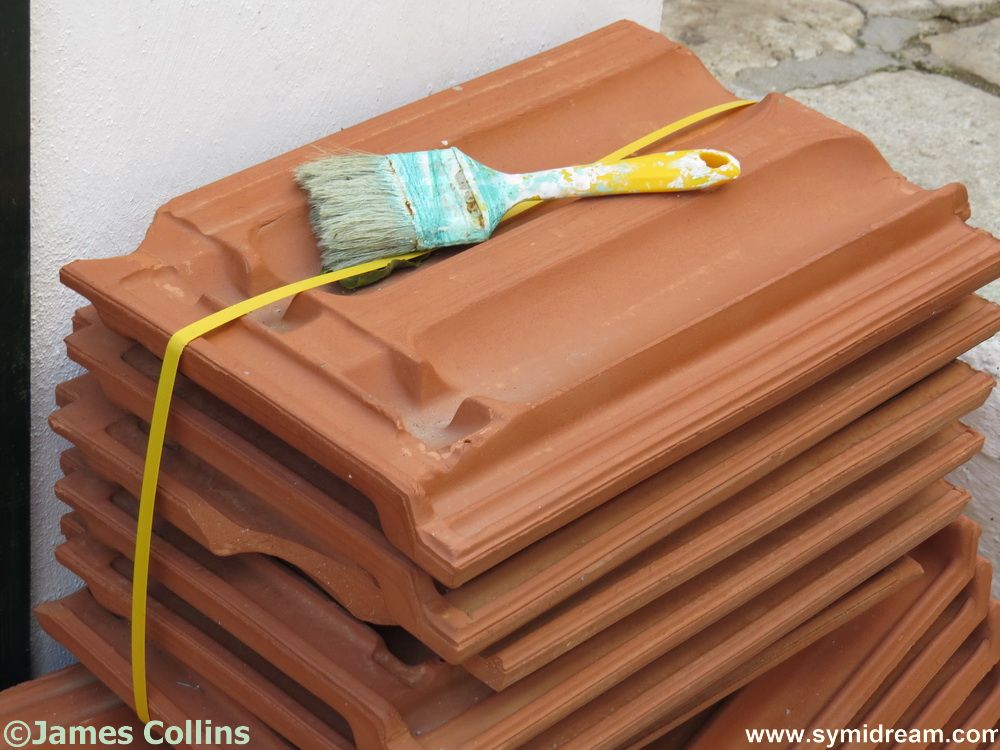 I went up the spiral staircase to the flat roof which in itself caused great disapproval from the cat who was considering another spot right at the top of the stairs (in the most unhelpful place of course, as he’s a cat). Standing carefully on the step-frame I was able to access the storeroom where our landlord keeps all sorts of useful objects, mainly lengths of ‘things’ and boxes of ‘stuff’, paint that is now solid, that kind of thing. I moved a box, put it carefully on the floor and the kitchen lights below went out – causing a roar from Neil who was cooking. Chefs to the left, cats to the right… I found the back of a knackered old chair that will do for now and it comes with the added attraction of being padded.