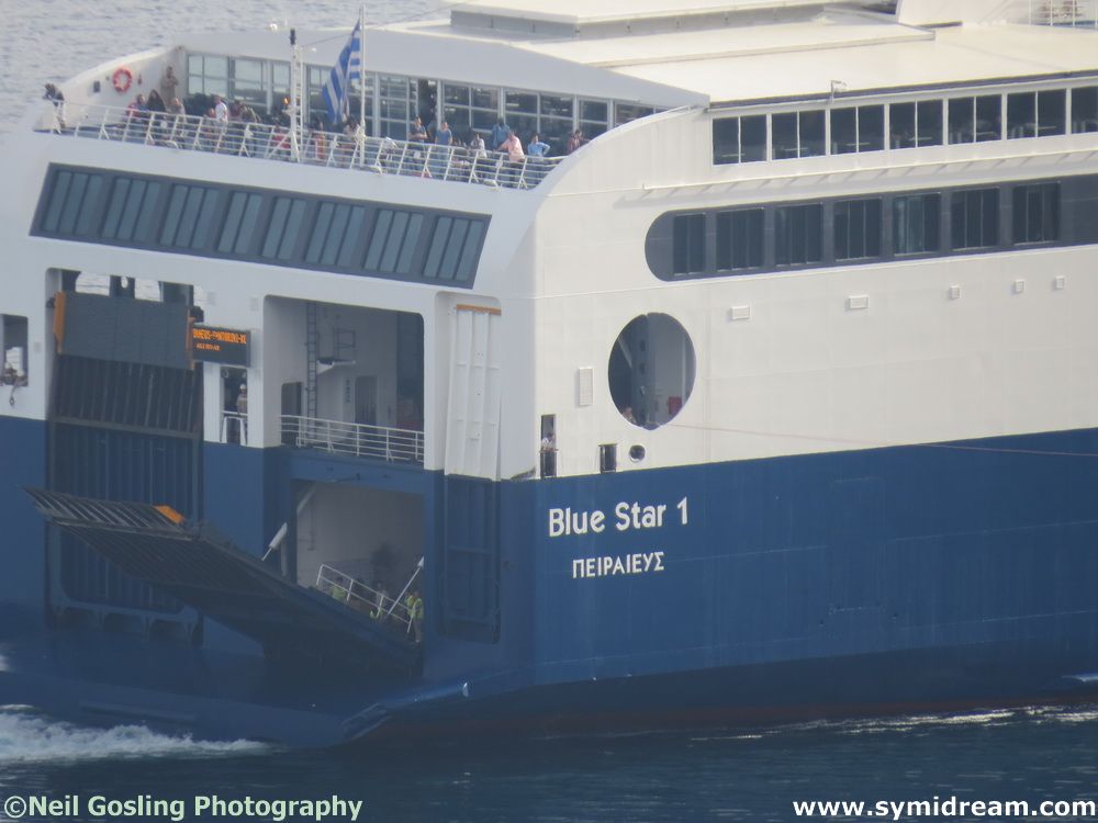 The Blue Star 1 came in on Monday as promised, sounded its horn, turned a circle and backed to the new landing stage. It was there about five minutes and was then off again. Very quick and efficient. If you’re wondering how you get to and from this new landing stage, it’s simple. You can see from the photos that it’s on the south side of the harbour and a fair distance from where the other boats land, but… You can take a taxi there if you arrange it in advance and the drivers will also pick you up from the boat if you have arranged that too. You can also take the bus down from Horio and Lakis, or Thanasis will stop by the harbour entrance (Petalo taverna/beach) if you ask them, I’m sure. From there you walk down the slope and along the new quayside.