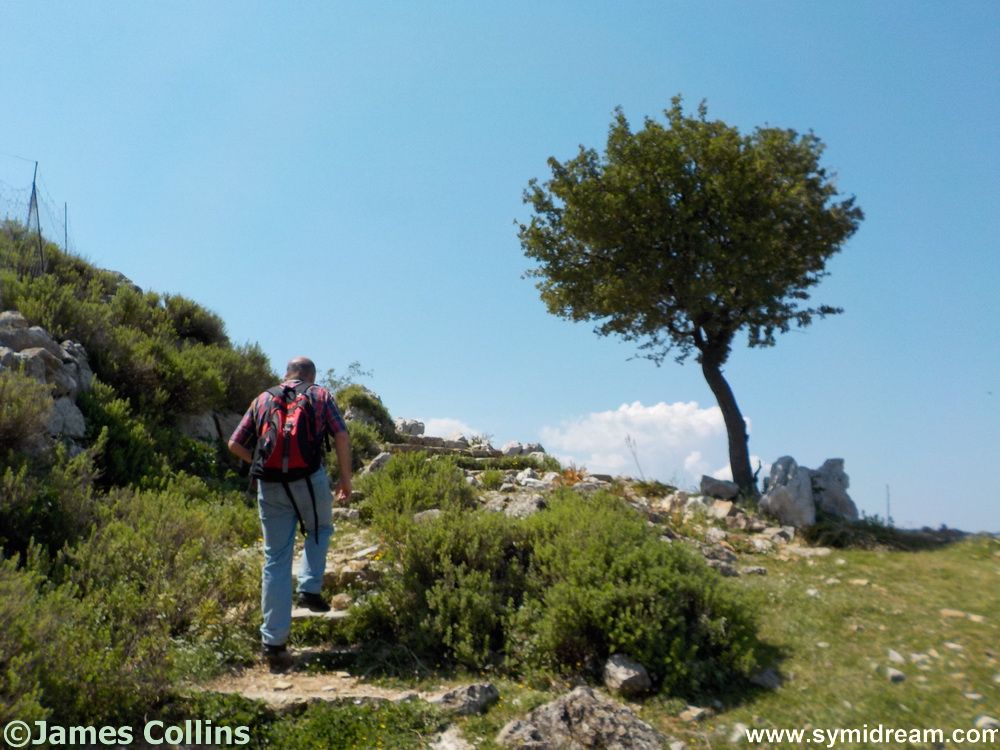We were out for our morning walk/jog at six. It’s getting to the time where we will have to consider moving things back to 5.30, the sun is already up at six and things are starting to get hot. We headed up the road, past the doctor’s surgery outside of which is parked a motor bike and a hospital bed, with a rock where a pillow would be. (Could that be a clue?) On up the hill and there to turn off at the Agia Marina cemetery.