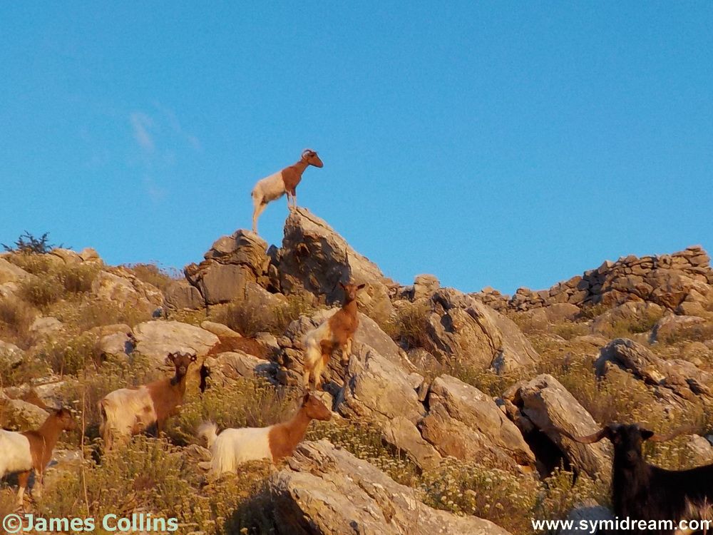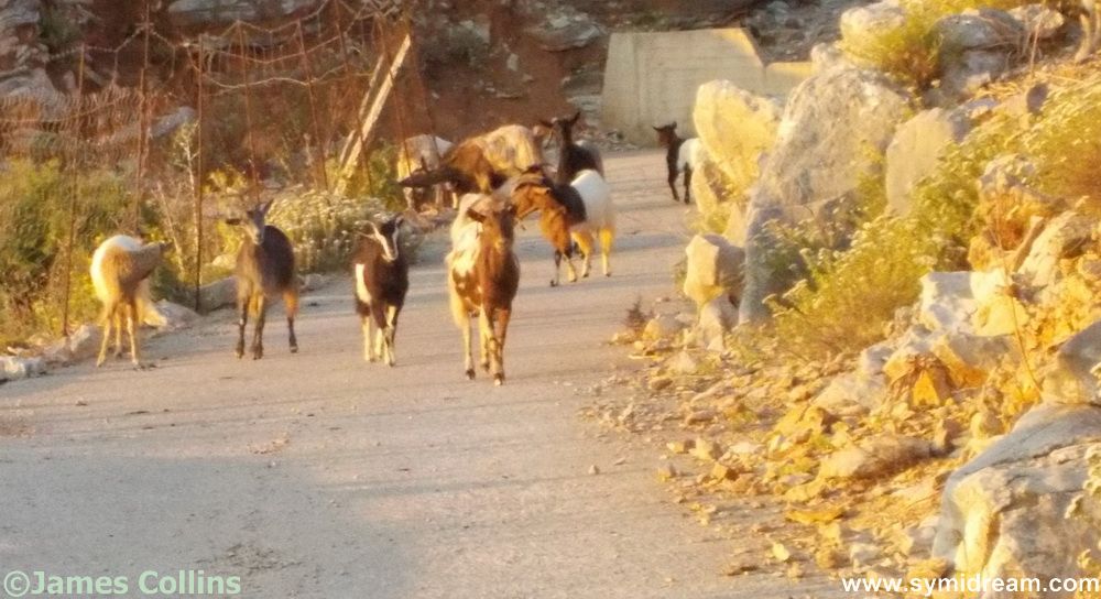After passing the same goatherd for the third day in a row (on two different routes), we reached that day’s target and paused for some water while taking in the sunrise over the village and over Pedi, where there were a few boats in. And then back down the hill, at a slightly faster pace, with an eye on the old knees, and past the yapping dog (the goatherd had vanished) and past the gravediggers, one of whom had also disappeared, the other one was still raking away, and past the lady putting flowers on another grave. And from there onto the road and towards home.