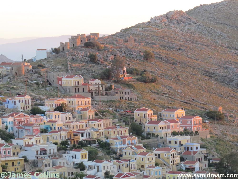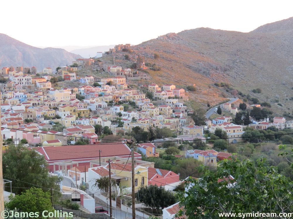 Another place to go to, depending on time, is the Nimos Taverna just inside Akandia gate. A taxi will drop you at the gate, which is actually a tunnel under the old wall. The restaurant is just at the end of it. This is run by two Symi guys and has the standard Greek fare but at fair prices and it’s off the main drag so not too noisy. Also, it’s only a short walk along the road to the Blue Star when it’s time to go. Leave enough time though, as the boat might be out at the end of the quay, so I’d leave at least 20 minutes from taverna to tailgate.