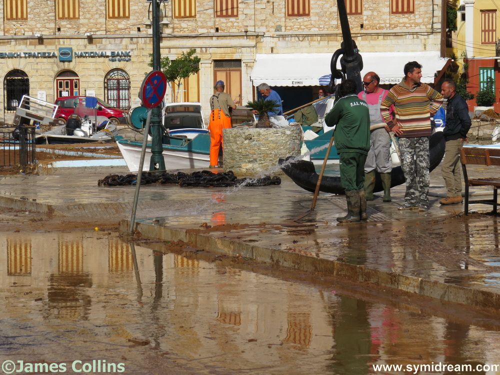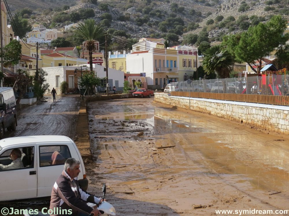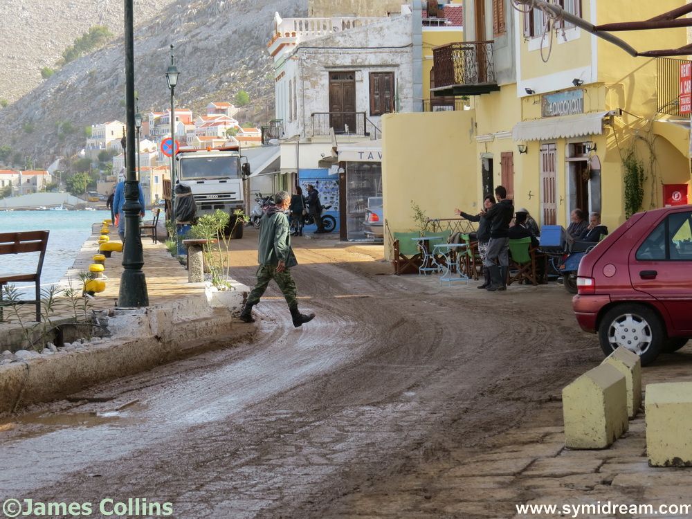 Sunday morning. The sun is trying to come up, and the view is lightening (6.30 a.m.). So far I can see heavy clouds, we’ve had a little rain and some distant thunder, but we are expecting more over the next two days. Hopefully, it will only be enough to wash away the mud and won’t hamper the clean-up operation, or lead to any more mudslides or rockfalls. Today, I wanted to put up some photos so you can see the difference between last week (which is shown in Saturday’s post’s photos) and Friday when I was last in Yialos.