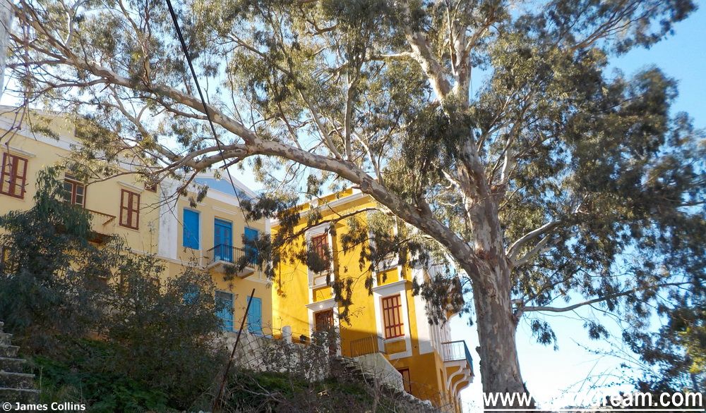 The photos today were taken on Saturday when we went down to Yialos to go to the bank and then buy some cat food. We stopped for something to eat and Neil was asked to take a photo for a driving license, which he was able to do in the street thanks to a handy white wall. He’s popping back later to deliver it. We walked back up the main road, which was very quiet, and had a look down on the new jetty that’s being built. It’s still just two barges and some lumps of concrete. When we once went on a tour of the West Pier in Brighton, we were told that most of the renovation work was happening under water, and so I imagine that’s what’s happening with our new docking jetty. The preparation is the thing and most of the work is happening out of sight at the moment.