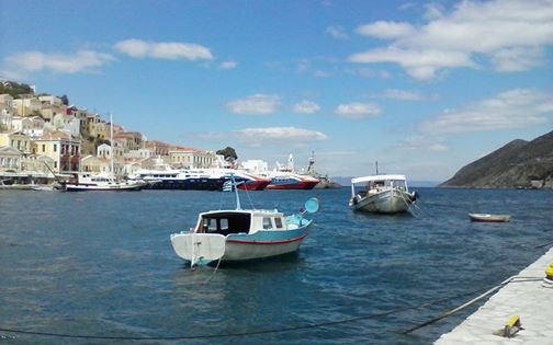 Yesterday, not being of the Orthodox faith, we had lunch in Yialos where both Dodecanese Seaways catamarans were sheltering from the rough seas. Apparently it was too rough in Rhodes harbour for them to even moor up, they were crashing around and so were brought over here. Never seen that before. You can see them in the second image today, taken on my tablet yesterday afternoon.