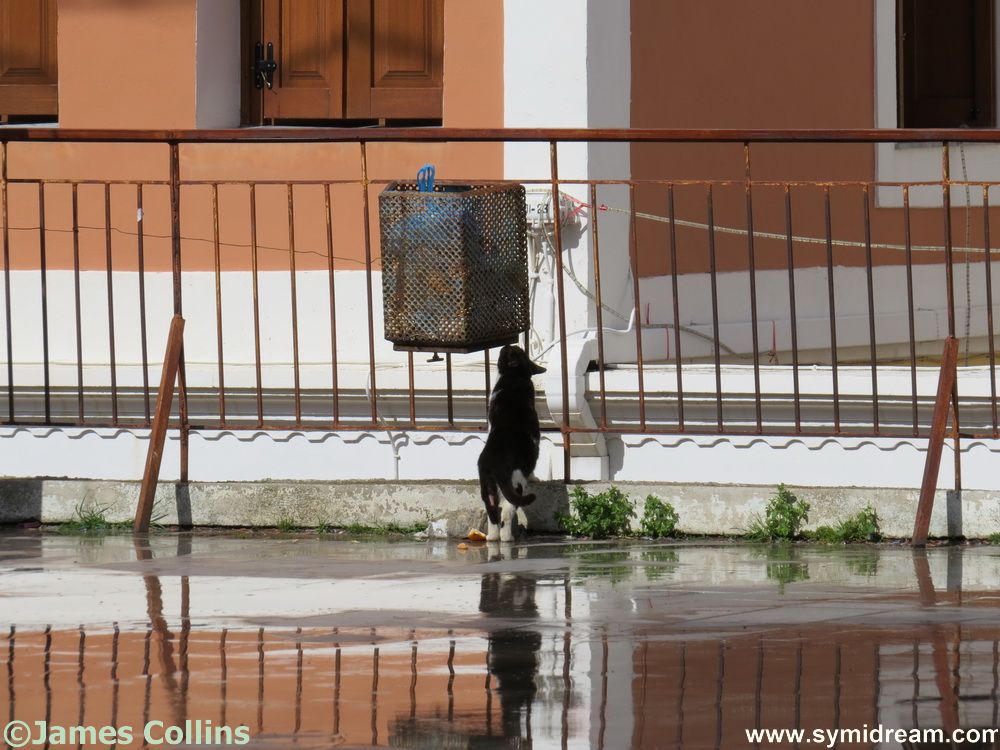 Having chatted yesterday about eating with friends, we did exactly that on Tuesday evening, down at Meraklis in Yialos. It had been a warm day and rain was forecast. We ended up with a thunderstorm passing over the island, but not a major one. This meant, of course, that we were ‘trapped’ in the taverna, under the awning, moving tables out of the drips but carrying on regardless like the dinner party in ‘Carry On Up The Khyber.’ Needless to say, dinner was fabulous and a very reasonable price. We were also in time for the bus which is now running until ten pm.