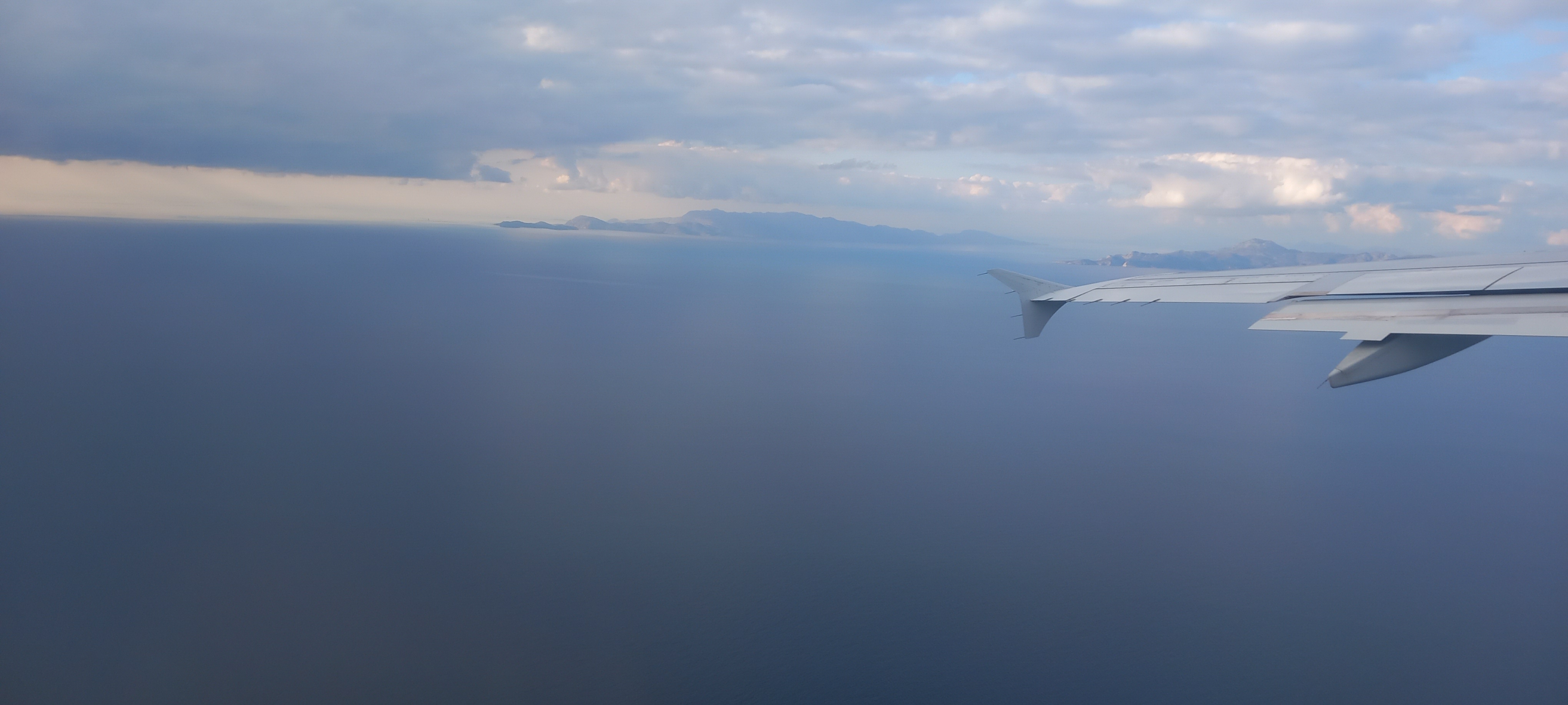 I always like it when you can walk across the tarmac to the plane; it feels like you’re trusted and everything is homely, but in this case, it was a bus ride as the plane was up the other end (a technical expression). It also took off the wrong way around, by which I mean, we set off in a direction I’d never taken off from before, so we got a different view of Symi before turning and taking the usual course. There were occasional breaks in the clouds to allow a view, but before you know it, you’re up, along and down again, arriving in Athens 45 minutes later. Quicker than taking the ferry from Symi to Rhodes.