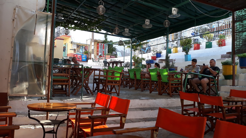 I’ve not been in the square late at night, which for me means after 7.30 pm, but when I have been there in the afternoon, things have been very quiet. It’s always been a bit like that as most people are at the beach in the heat of the afternoon or having a siesta. Later, though, there have been more people about, when it’s cooler, after around six, and then even later – way past my bedtime – I’ve heard it’s also been busy. Well, on most nights anyway, and when I say busy, I mean busy for these days. I’ve also seen photos of a very quiet harbour in the mornings and evenings, but a busier one when the day boats come in.
