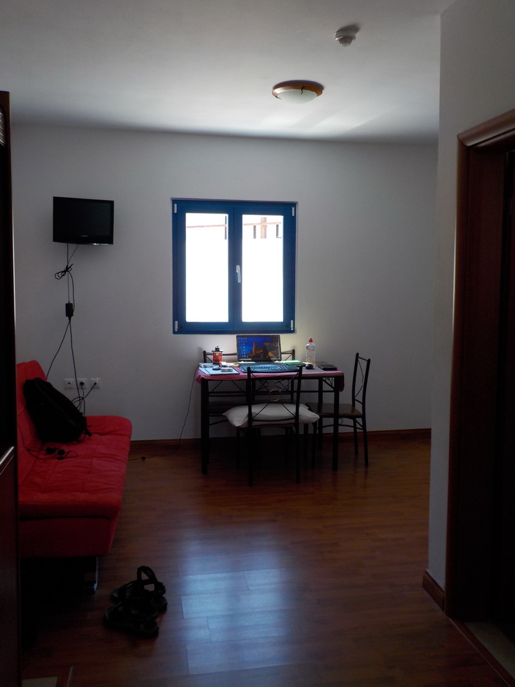 Wake early, usually around 6.00 if not before. Take a long walk along the seafront and back to clear the head. Open the laptop and sit down to work around 7.30. Work through until coffee time, take a break in the town square while the room is cleaned – they do it every day there. Another typing session until lunch, usually taken in the square or on the terrace as the mood strikes. An afternoon session that runs until around 5 pm when I shut up shop, change, take another walk if I feel like it, and then head to the square and dinner with my notebook.