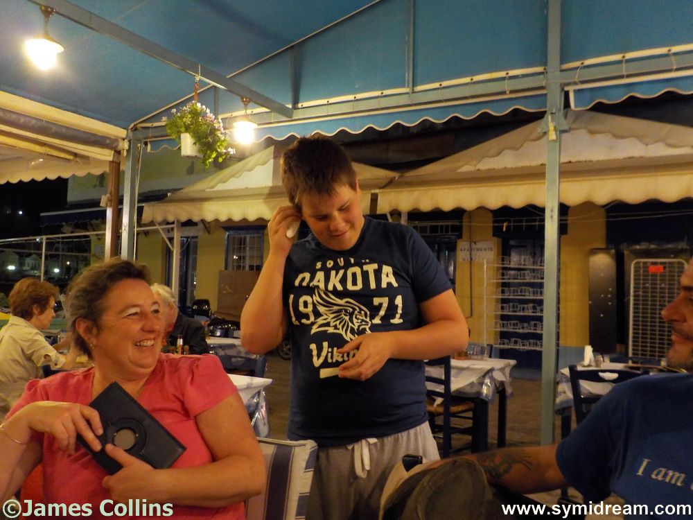 Before I forget, I should thank Racheal from The Symi Estate Agent for the photo I’ve taken from Facebook, and to Sevasti from the Symi Women’s’ Association for her photos too. The others today are from our ‘family’ after show party which we held at Trata, the Trawler taverna in Yialos.