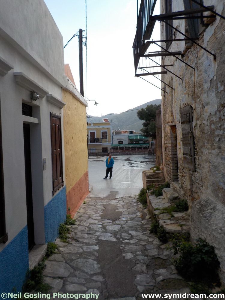 But first, yesterday. Sunday morning, 08.30: Waking up early to a fabulous, though damp, morning. The balcony was dripping wet, the windows were slightly misted up and yet the only cloud I could see first thing was hanging low over Nimos, obscuring the top of the hills. It must have been a humid night. Yesterday (Saturday) was hot in the sun, so much so that we even contemplated sunbathing on the roof. The evening felt colder because of it and today, Sunday, morning feels like summer. We are going to walk to St Nicholas later, so there should be some decent images over the next few days; meanwhile, today’s photos were taken on Saturday when we went to Yialos to get some shopping and have a bit of a walk.