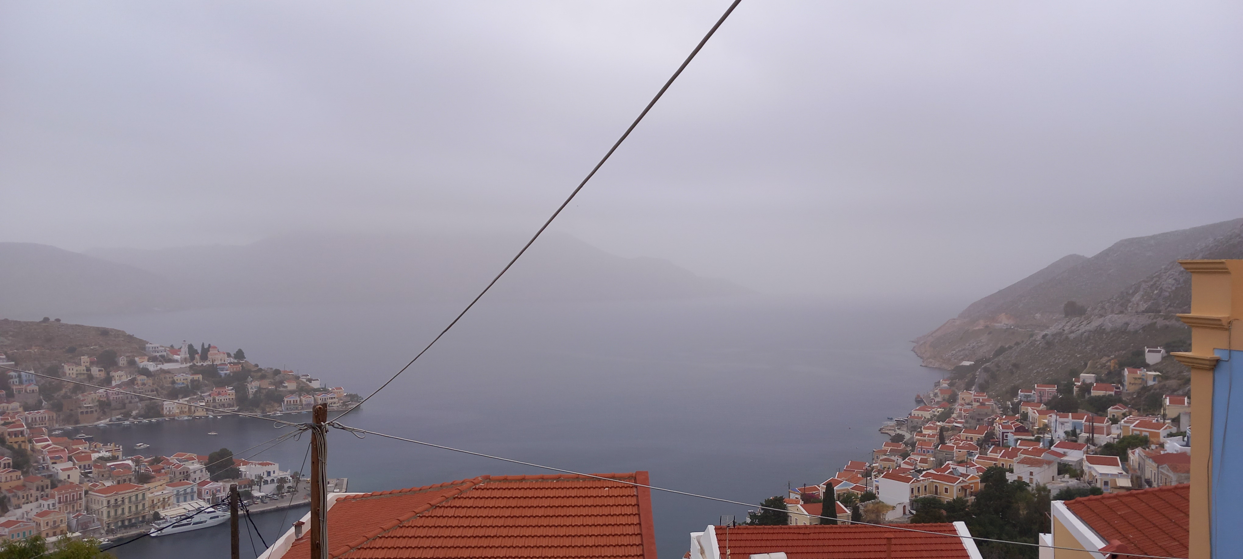 It could also be dust, but we do have days where there’s so much mist you can’t see Nimos – just like today. You can see other things, like cats strutting the streets and looking mean…