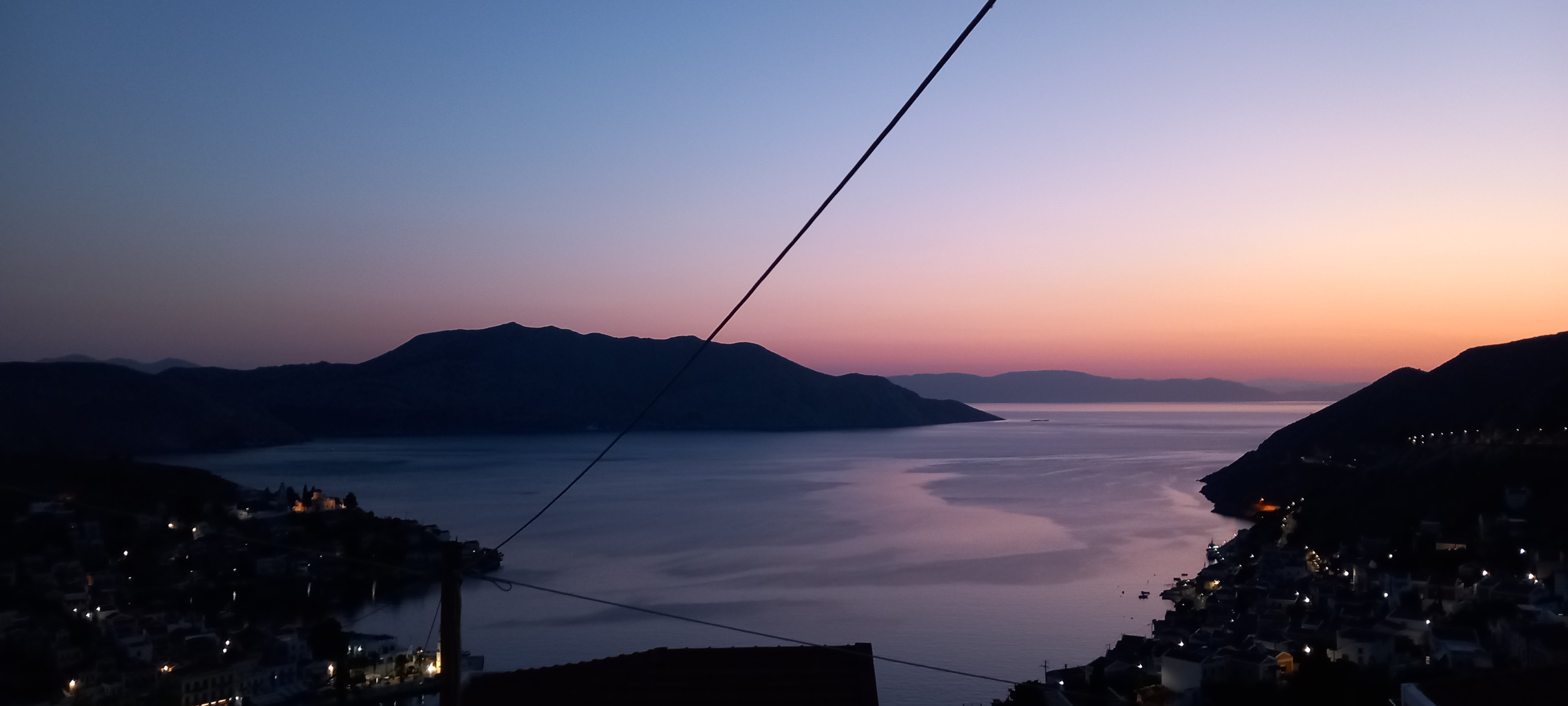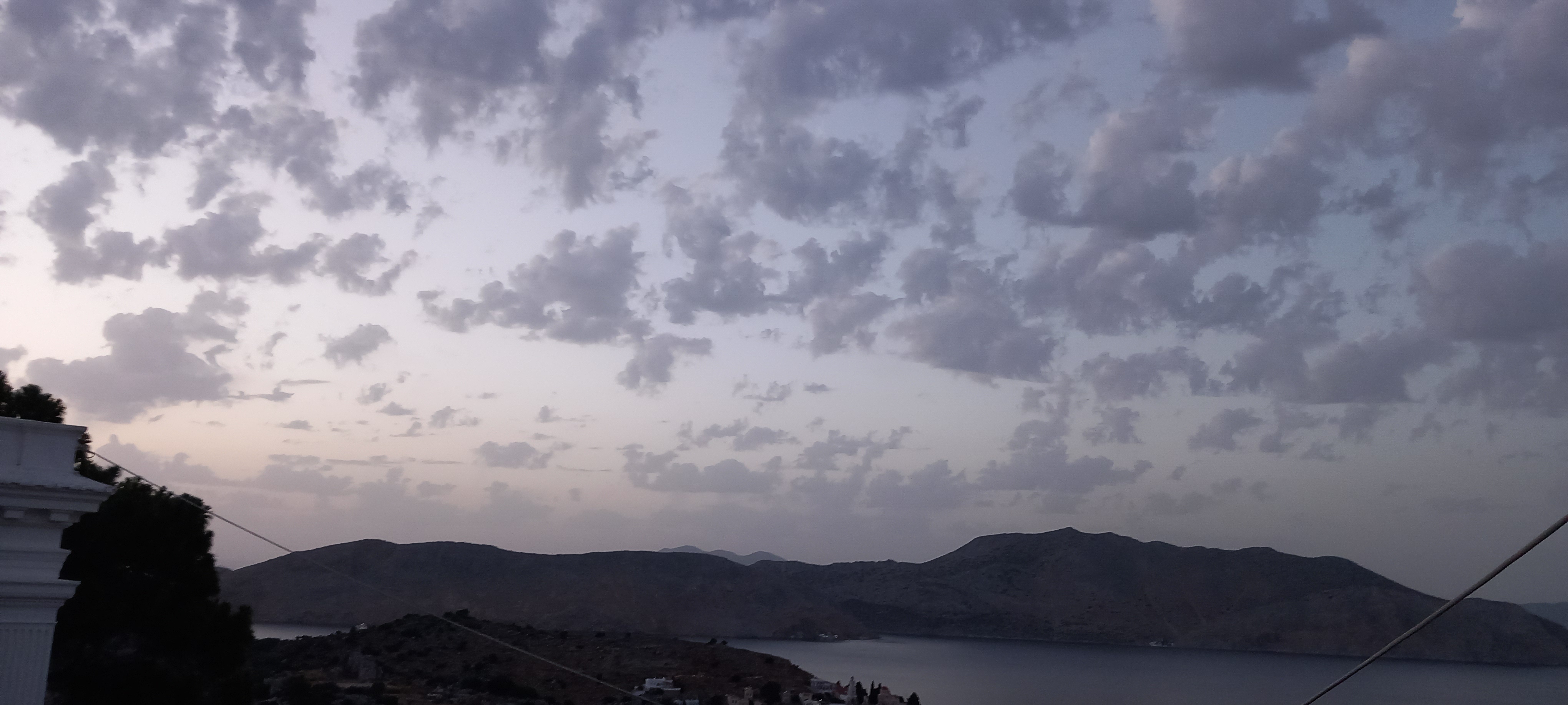 Scena, near the bus stop, is open for lunch and evenings and is right next to the play park, so it is a good place for families who want to chill while being able to watch their children play. There’s also Greek music at the weekend, a film night, and a great menu. As you can see from the next random, we had skies over the past few days too. The cloudy one was last week, actually, but the dawn photo was taken on Sunday when I was up at 5.15, just in time to catch the colour before it faded about five minutes later.