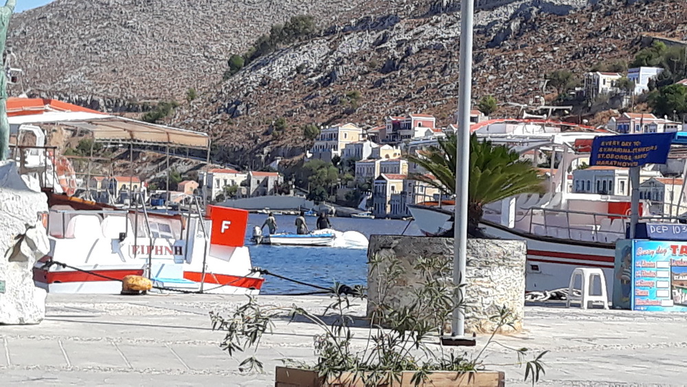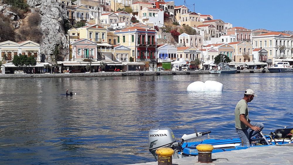 There’s work going on in the harbour, and I mean in the harbour. Concrete slabs are being dropped, planted, placed, sunk, whatever beneath the water for a reason I can only guess at, and this involves floating them out under balloons and then deflating the balloons, so the slabs sink, and a diver goes down with them to… Well, most of that is guesswork. I’ve been told they’re concrete slabs, I only saw the balloons, and I can only assume it’s something to do with making anchoring easier? Whatever the reason, I’m sure it’s for a useful purpose.