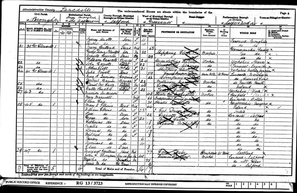 The Wood family meanwhile: Sarah A, Kate's to-be mother in law, is in Bowden with daughter Martha (single), Nelly, single and Frank S, single. Looks like Mary and Lucy have either married or died.