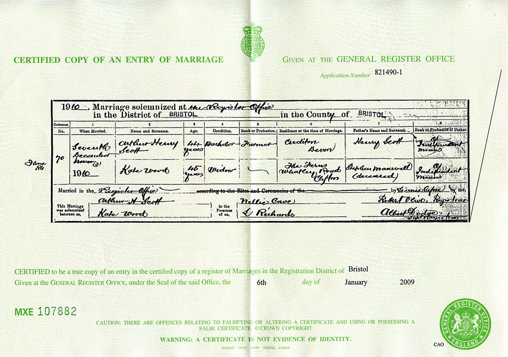 The last 'sighting' of Scott, on his daughter's marriage cert. |