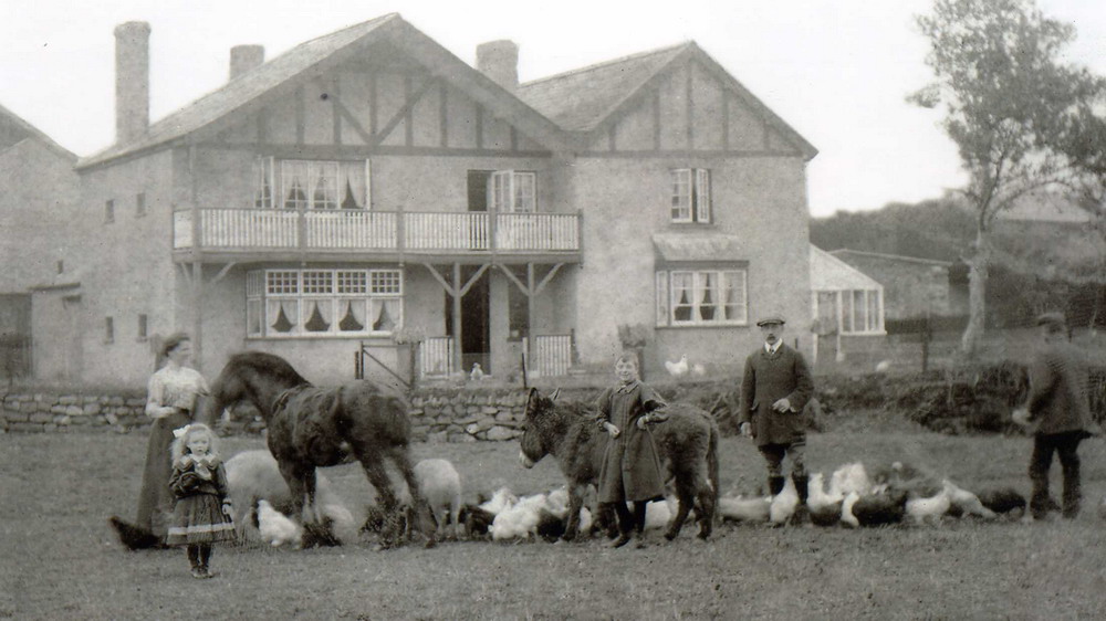 According to Daphne Munday’s book on Sandford, the two cottages at Priorton Mill were let to the d’Egville family in the 1930’s, and when the mother died the two brothers came to live there, Rene and Allan, with a cousin living in the other cottage. 1930’s? If this photo was taken in 1920 KM Scott would have been 12 and the d’Egville family would not have been there yet – so perhaps they were friends of the Scott family. |
