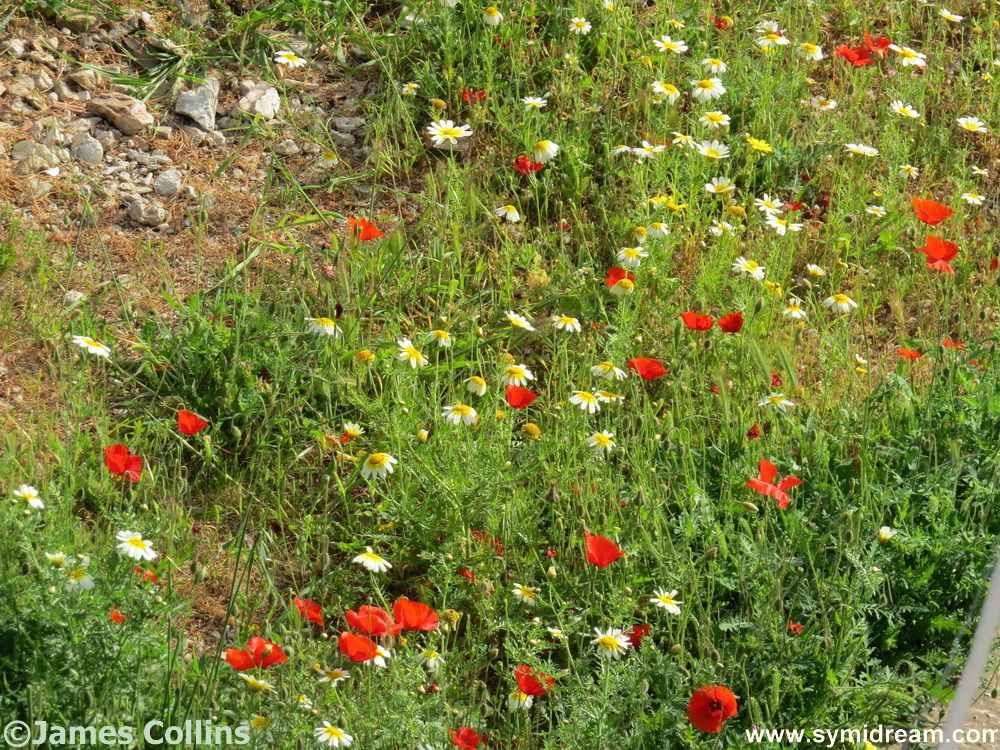 Monday’s breeze blew into a wind in the evening but calmed during Tuesday morning to once again leave us warm and calm. The sun came out and the sky, although not yet the painted blue of summer, was reasonably cloudless though a bit pale. Spring flowers are out still, even the weeds are attractive at this time of year and our courtyard plants, such as they are, are coming along. The chilli is growing, and now I’ve separated some other plants and thinned them out a bit, they are also doing well, and the vine is growing at the rate of about two inches per day. Spring is still springing here on Symi.