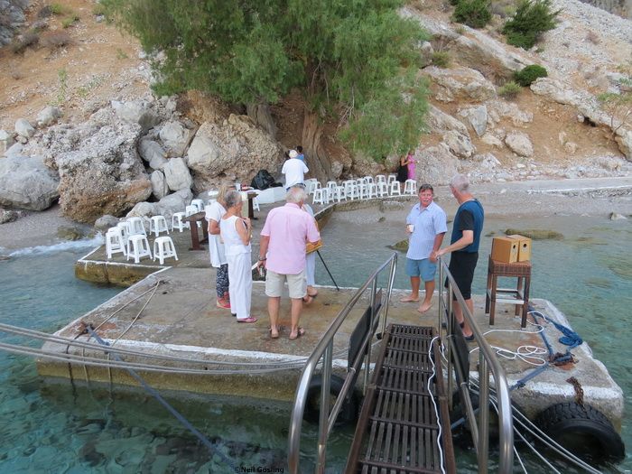 Anyway, Neil was invited on a birthday trip at the weekend, as I was I. Sadly I was unable to go, so he took the photos you see today. The Poseidon took the party out to St George, one of Symi’s famous beaches. This one is only accessible by sea unless you abseil down the rocks, or base jump from the top, which has been known. I would advise the sea route just as the characters in ‘The Guns Of Navarone’ did when they came ashore at ‘Navarone.’ Some of the film was shot at St George’s beach, Symi, and other parts in Rhodes, and probably other places.