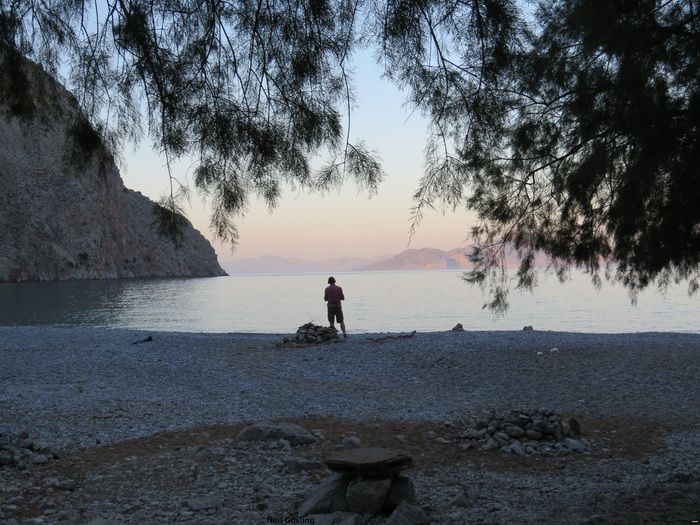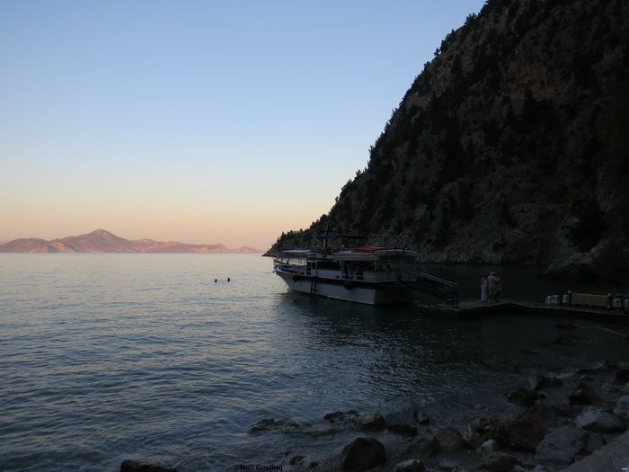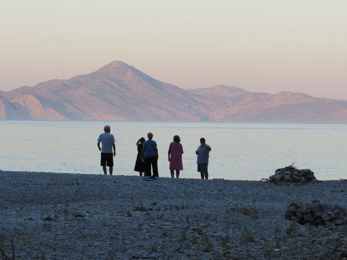 Yiannis Poseidon does take private charters for evening parties if you are interested in organising one. Just go and chat with him in Yialos (not Horio) of an evening or early morning before he takes the boat out for his usual daily excursions around the island. I can’t tell you too much about the St George trip for a birthday party as I wasn’t there, but some of Neil’s photos below will give you can idea of what it’s like there in the evening. I hope no-one minds me showing their image on the blog. As usual, if you do, let me know, and I will take the photo down. (There are more to come another day.)