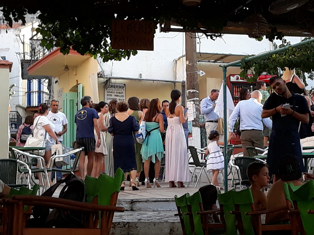 There was a wedding in the village last night (a couple of photos today of people on their way), and a concert in the square for the Symi Festival. We said goodbye to some friends who were leaving after a seven-week stay on Symi and then stopped for one or two more in the square. I managed to get some writing done on Saturday morning, another two draft chapters for ‘The Eastling’ which is nearing the end of draft one. I am still hoping to have the book ready in time for Christmas, but there’s a fair amount of work needed on draft two and beyond to bring it up to scratch.