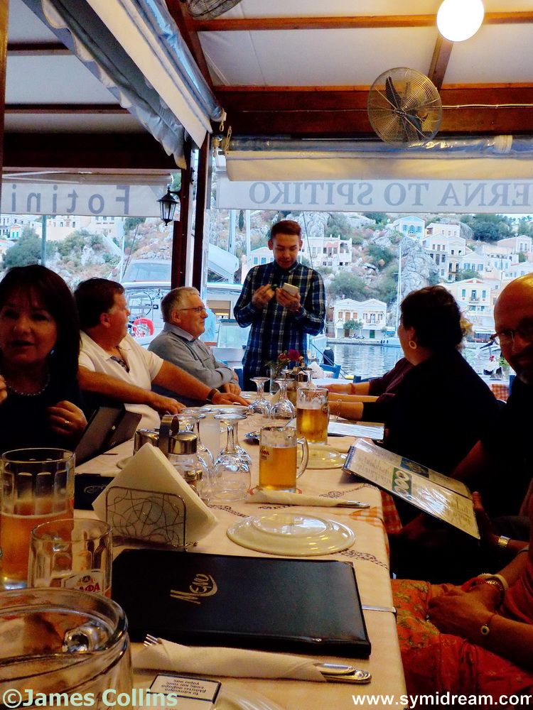 On Friday we went into Yialos to meet some friends for dinner at To Spitiko. The number of the party had been growing through the day but finally, and very appropriately, settled itself on thirteen. Thirteen for dinner – yes, not only an Agatha Christie book and film adaptation (Actually, it’s ‘Thirteen at dinner’) but also the subject of a famous Leonardo mural as I am sure you know, and a happy coincidence for us on Good Friday. So, we sat down and our waiter served us calmly and very politely and with humour and efficiency – and I’m not only saying that because he is my nephew, it also happens to be true. A lovely dinner and we even had some cabaret thrown in thanks to big boys and bombs.