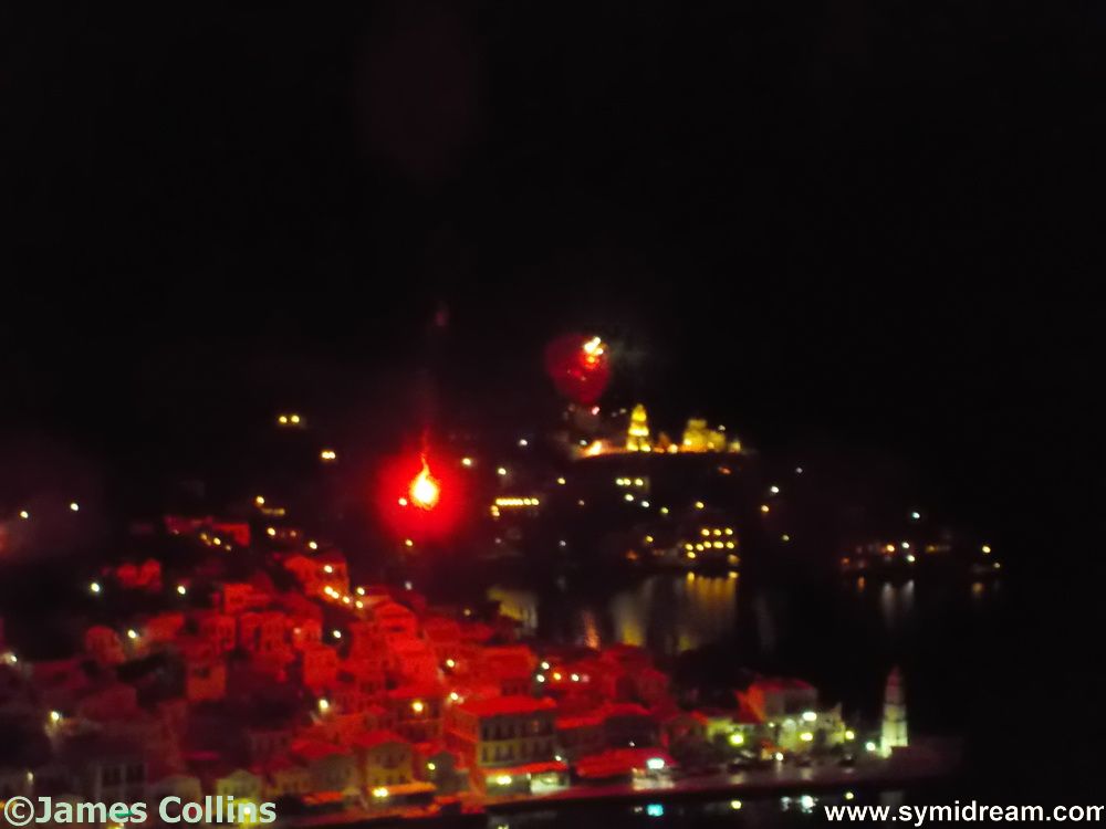 Big boys and bombs? Well, not so ‘big’, but brash and stupid really. There we are, sitting among the remains of a large dinner party -some of the guests had left and the tables were being cleared- the bangers and dynamite were going off as the Easter procession was making its way along the other side of the harbour, carrying the bier from church to church, when suddenly some bloke on a boat decides that he doesn’t like these bangers and shouts out, very aggressively and with some threatening gesticulation, ‘Don’t throw them I don’t like them!’ The standard response to this from any self-respecting banger-thrower would be to light one and carry on throwing, that is, after all, the custom. It is, after all, your island and it is, after all, Easter Friday. That is, after all, what happened. This was too much for Mr Seven Stone-Macho (hyphenated) and he was straight off that boat, fists raised, and into the party of diners a little way up the quayside. He was a bit outnumbered and things were calmed down, Neil was in there sorting it out too and calm was restored; a little too much of the falling down water methinks. Clearly if you don’t like bangs, explosions and fire crackers, then you don’t come to Greece at Easter weekend. Such things (trying to start a fight) are uncommon sights on Symi, but a bit of cabaret for us after dinner. And no animals were harmed, nor any humans and the bar owner (whose fault it certainly was not) sent them over drinks as a gesture of hospitality, but they were rejected and the boat set off into the night to find a quieter country. Anyway, that was that and then…
