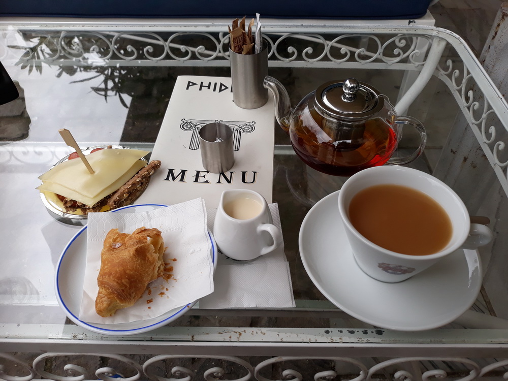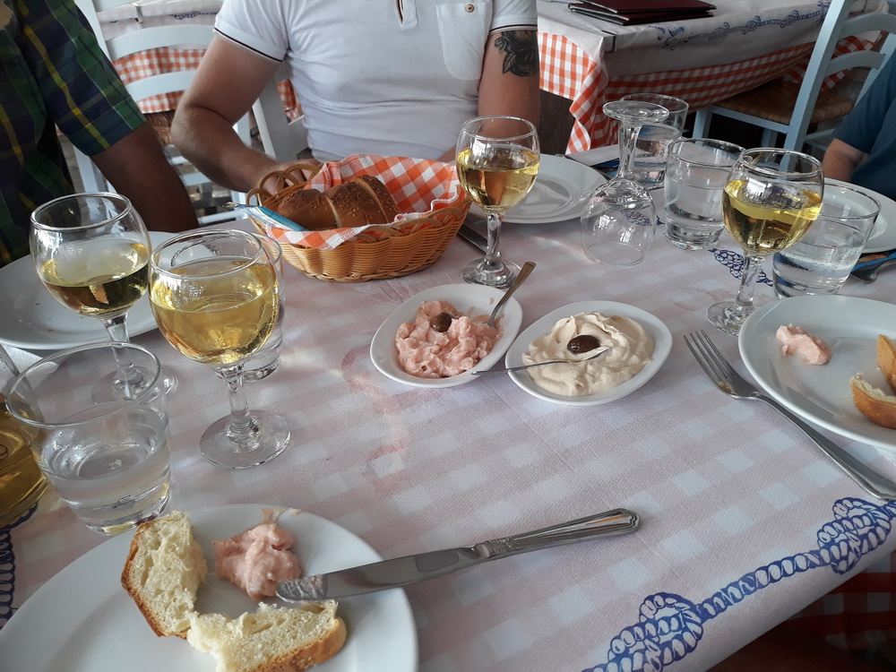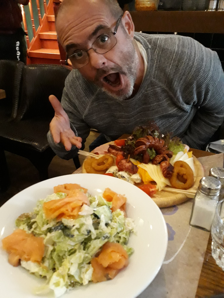 A ‘light lunch’ menu – again, Athens and only six euros per plate; cheese, ham and sausages on one and a salmon salad on the other, in case you were wondering,