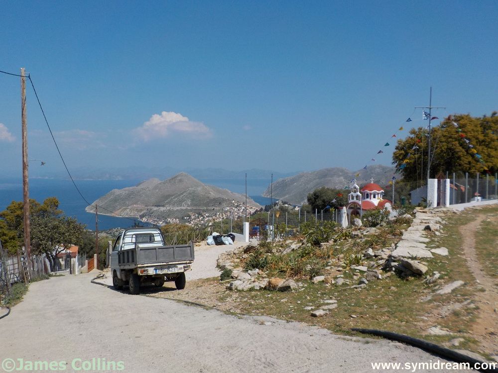 Back to the Symi walk and, slightly lightheaded, what you do is this: You can looks one way and see the other side of the island, across the main road and towards Ag Michaelis Roukouniotis…