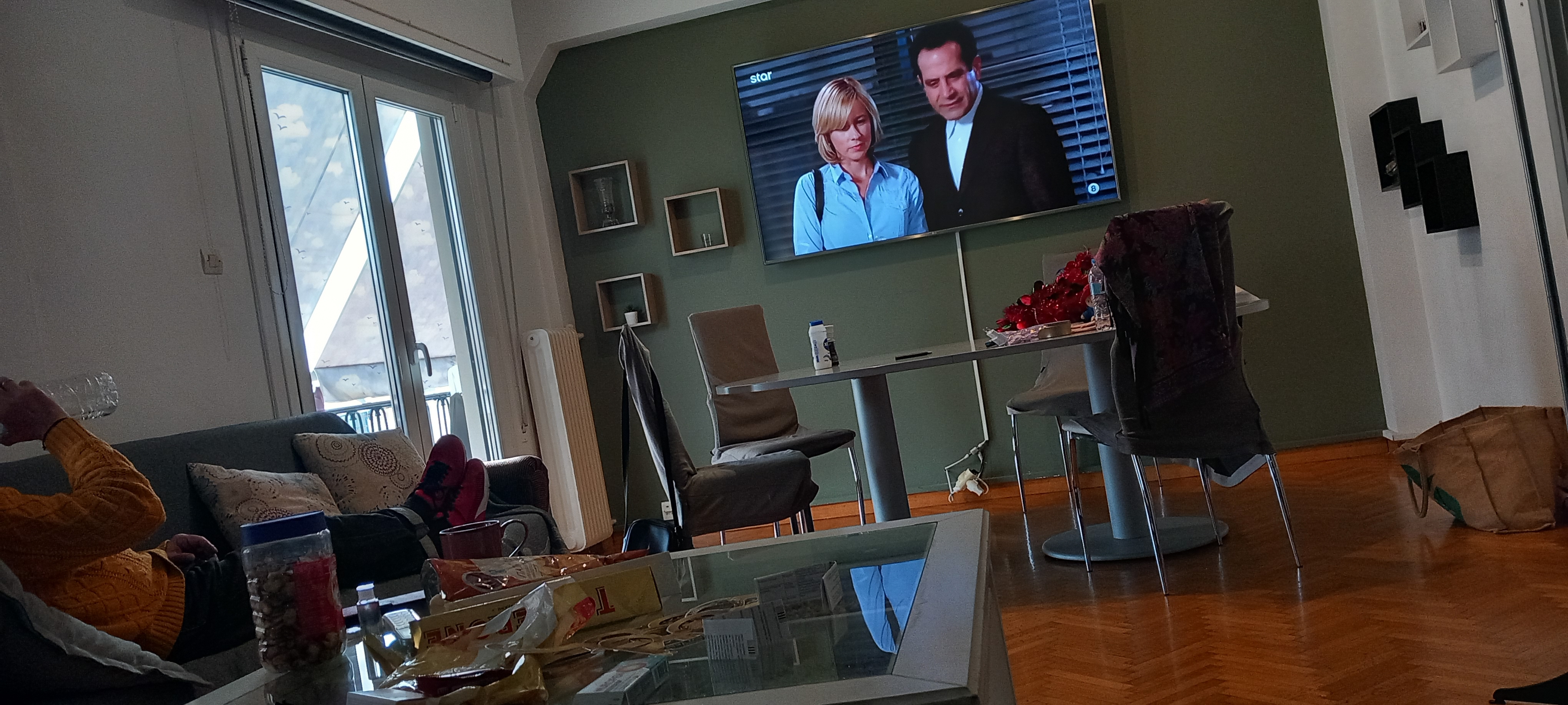 On the second sofa day, I ordered Neil to go out with the others as there was no point both of us staying home, watching old films on TV and shivering. They had a good time, did my shopping for me, took it all up Lycabettus Hill to see the views, came home, dressed up and went to the Nutcracker at the GNO while I stayed in with Angelina Jollie and other choice films. I was able to get my packing done, and the next morning, was awake early to get dry and warm, and shove things in a bag or two, later, to head to the ferry.