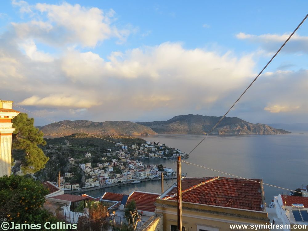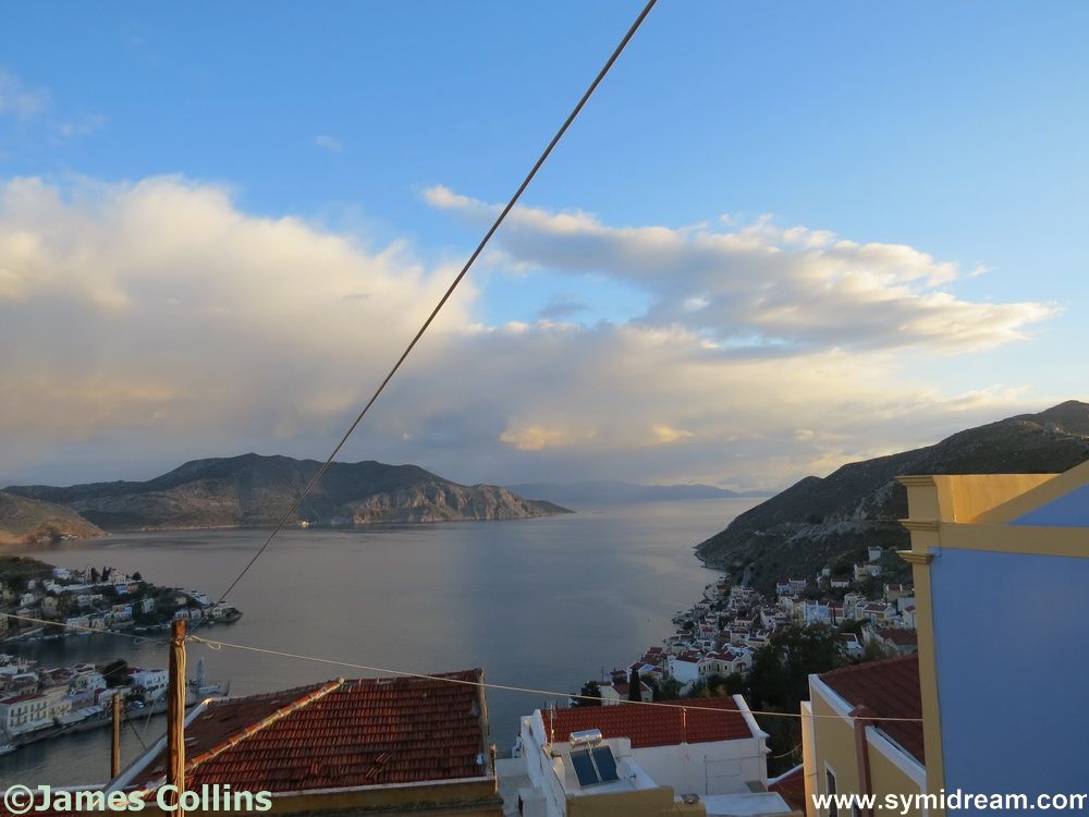 A few shots from the balcony today, taken on Sunday, not very inspired, but at least you can see that we opened the balcony doors and shutters for a while. We also went ‘downtown’ on Sunday for lunch with Hugo and some other friends, and had a ‘light’ lunch of five courses. All spectacular. We were also lucky enough to get a taxi back up as one of our party had Thanasi’s phone number and we’d seen him working. He’d just been to Nimborio and was then heading our way, so that was lucky.