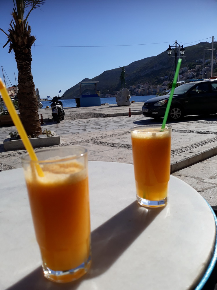 Weekend highlights? A trip to the bank, post office and shops. An orange juice at Pacho’s, a walk up the steps. Dinner with friends. Saturday afternoon at the kafeneion receiving all kinds of weather reports, discussing ‘red rain’ and other subjects, watching the ‘boys’ being naughty (Neil and Yiannis are like a couple of teenagers when they get together), and having a general chillout time. That was after an afternoon at the writing table plotting and planning while sending another pen name story off to the publisher – a posh word for Amazon.