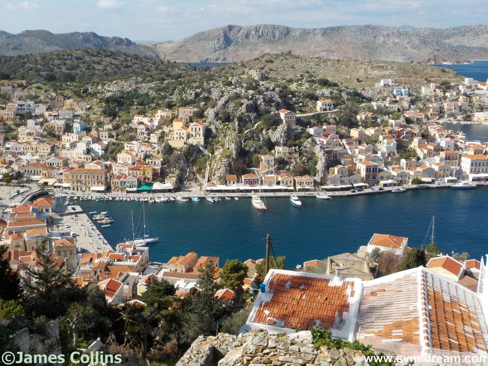It will also mean that most supplies come in on the south side of the harbour, and this will mean fewer trucks grinding around the narrow quayside, something which can be tricky. I can’t count the number of times I’ve seen shop owners rush out to pull their awnings back in, or seen groups of day-trippers have to part like the Red Sea to let a lorry through. And then there’s the noise and fumes from the vehicles, and the congestion that a landing boat causes. Hopefully all that, or at least most of it, will go once the dock is ready and connected to the road. Meanwhile, Symi will carry on as normal and we’ll all put up with the disruption of large lorries and visiting cars as they are bringing in supplies, building materials and things needed for folk to make a living, tourists included. (It doesn’t last for long and it’s quite entertaining to watch.) But for now, if arriving at Symi, you’ll most likely still arrive on the north side near the clock tower, both on the Blue Star and the Dodekanisos Seaways boats. The ‘Sea Dreams’ is pulling in on the south side near the bus stop, when it comes in.