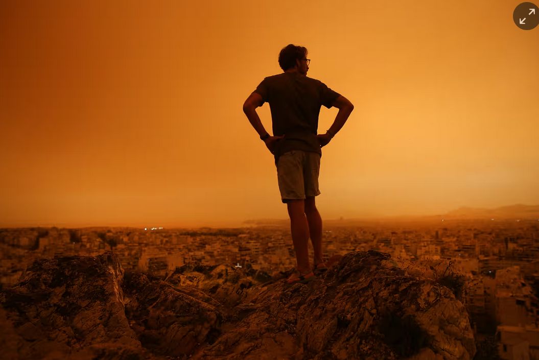 Today, there is a report in The Guardian titled, ‘Athens swallowed up by orange haze from Sahara dust storm.’ This is one of the images: