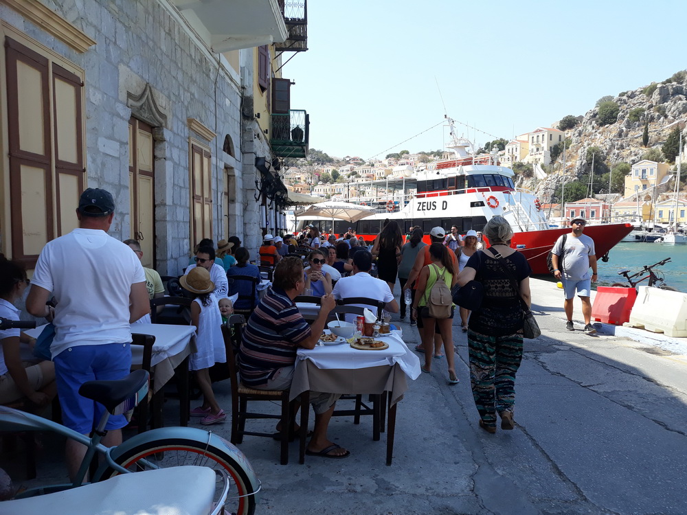 As today, for me, is all about filling out forms, dealing with emails, pretending to tidy the house and preparing for dinner in Harani, I’m not staying around for long. I’m also recovering from an unexpected day on Wednesday. We popped down to Yialos so that Neil could do some paperwork at the bank, and it took longer than we expected, but it was worth waiting for. The result was that we decided to have lunch down there and then walk up afterwards in time for him to do his shift at the bar. So, today’s blog is mainly photos taken yesterday in the harbour, and tomorrow’s will probably be the rest of the photos I have taken this week that I’ve not shown you yet. By the way, check Andy’s travel blog (link on the right) for the latest news on the ANES boat, the Sebeco, and it’s timetable as I believe that’s about to change or end, and it may affect your travel plans if you’re coming over soon.