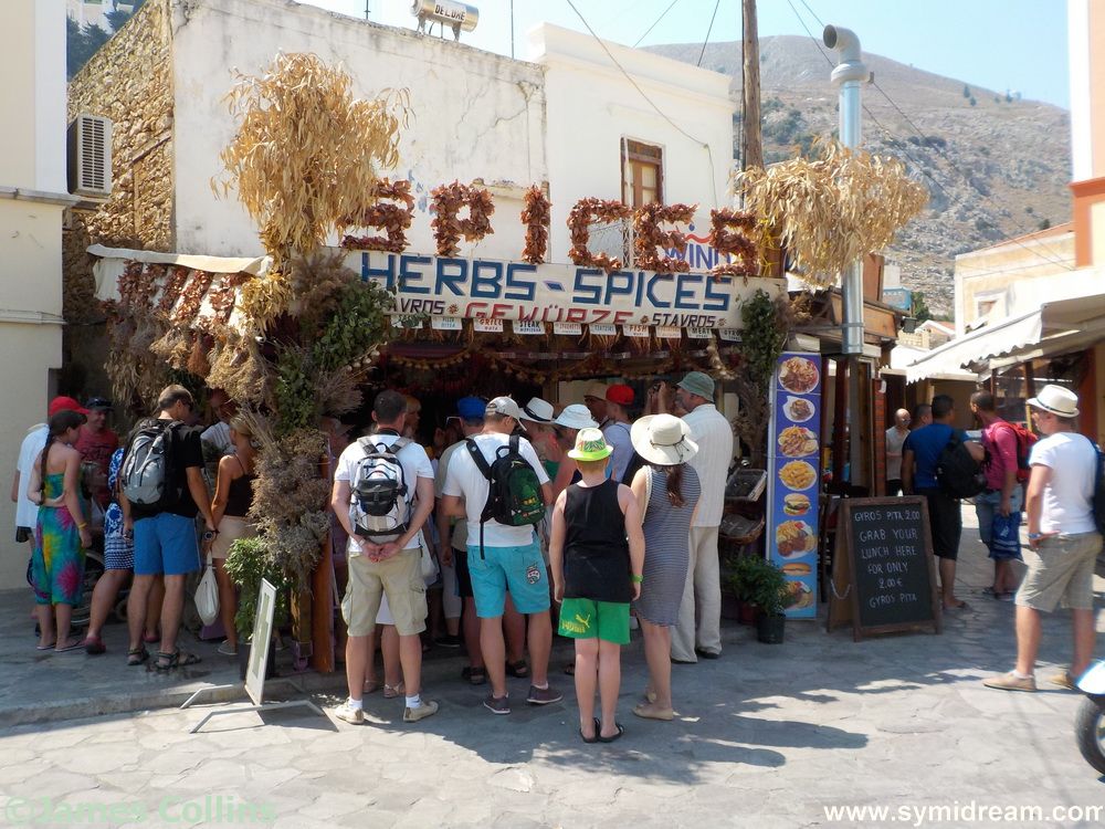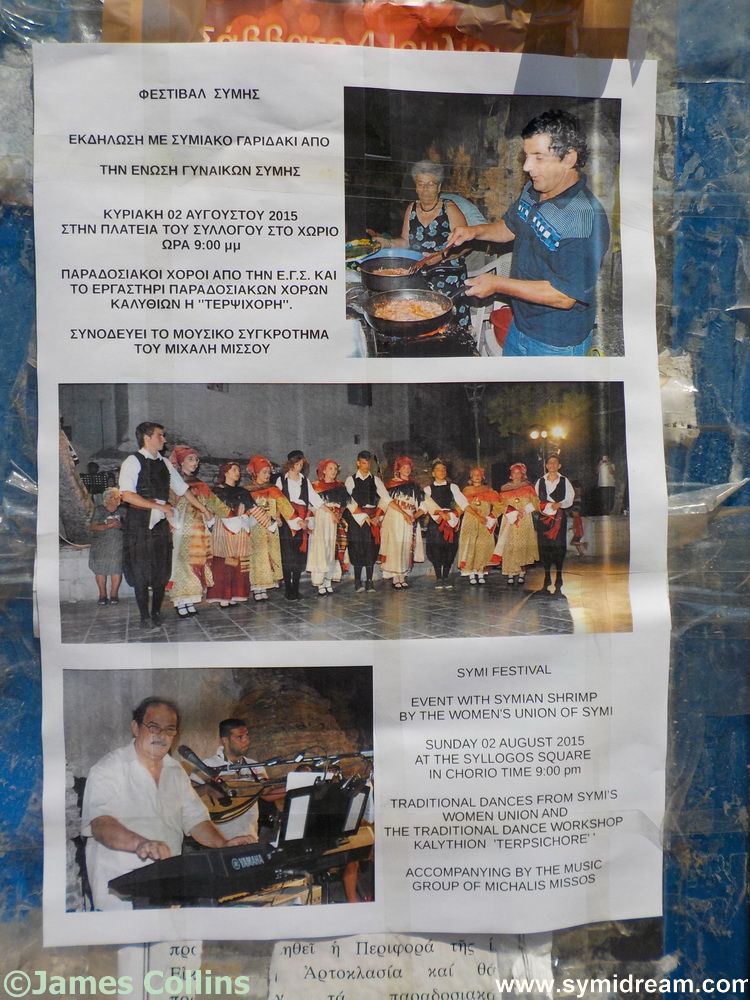 While there we spied a poster advertising this Sunday’s Symi Shrimp Festival (good to see Neil’s photos still being used after all these years). That’s taking place in Horio at 9pm onwards, free Symi shrimps provided by the Symi Women’s Association, and also music and dancing, everyone welcome.