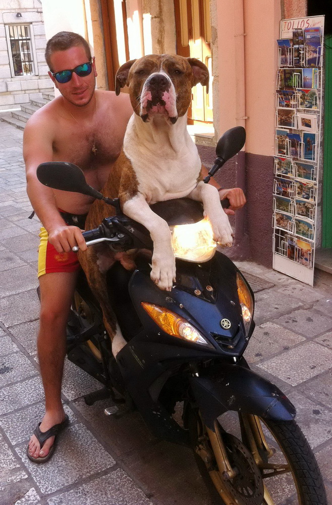 But my favourite photo from yesterday was this one of Thanasis, the bus driver (one of) and his dog. We’ve been trying to get a snap like this for ages as he and dog, on the moped, are a common site around the harbour, but we’ve never managed as good a one as this before. Thanks to Jeanette in Nimborio for sending it over, and to Thanasis and his hound for posing. You do kind of wonder which one is driving.