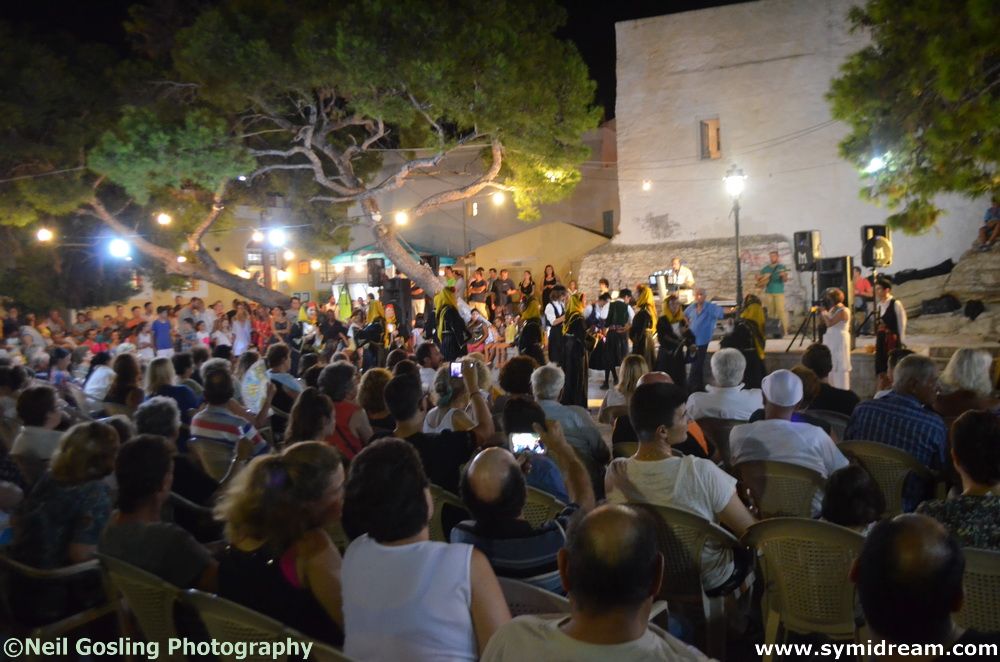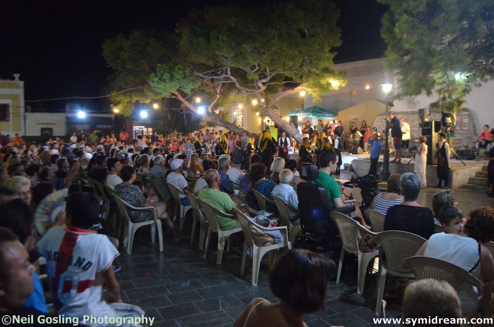 Some photos from Sunday night’s Symi Shrimp Festival. The Symi Festival 2016 is now underway and there are many events coming up. You can get hold of a programme when you are here and there are announcements in various languages on the day of events as the venues are often not known until the day. The Shrimp Festival, with island dancing and music, and refreshments, was held in Syllogos Square, Horio – very handy for our house. We spent some time there and at the Rainbow with friends, some of whom had come over from Rhodes for the night – I hope you caught a few hours kip somewhere Amanda & Dave!