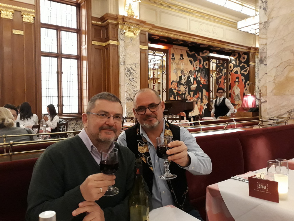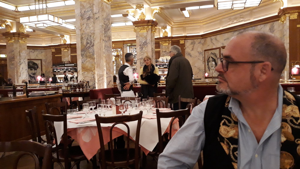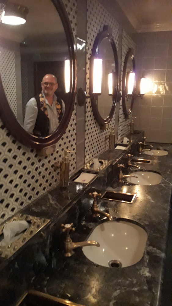 We’d never been to Zedel’s, but knew we ought to dress for the occasion so we didn’t feel out of place among the grandeur as it’s a posh bistro. While having a pre-late-lunch drink upstairs, I heard back from another old school friend of mine who was vaguely invited to join us for a reunion on Sunday (we’re on Friday now, btw). He, another Neil, was probably not going to make it, but, it transpired, sent me the message from the theatre seat he was currently occupying, waiting for a matinee to start. The fun fact here is, he was seeing a preview of Pretty Woman at the Piccadilly Theatre which was (still is) about ten yards away from Zedel’s. I could see it through the window. Sadly, his interval didn’t coincide with our being so close, so we never caught up with that dodgy tale from the past.