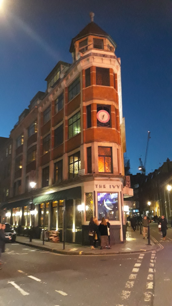 We wandered for most of the day, from Covent Garden to Soho to Oxford Street via the backstreets, had a roam around and back again for a freshen-up. We had, months previously, booked seats to see Blithe Spirit at the Duke of York’s theatre, and our Symi friend Ann was due to join us. We’d also booked a table at Brasserie Zedel for a late lunch before heading to see the play. However, the advice at the time was for the over somethings (can’t remember if it was over 60 or over 70 or over the hill) to stay at home. Thus, Ann had to cancel her afternoon and evening with us. We found a replacement for the show ticket but not the lunch, in the form of an old school friend of mine we’ll meet later.