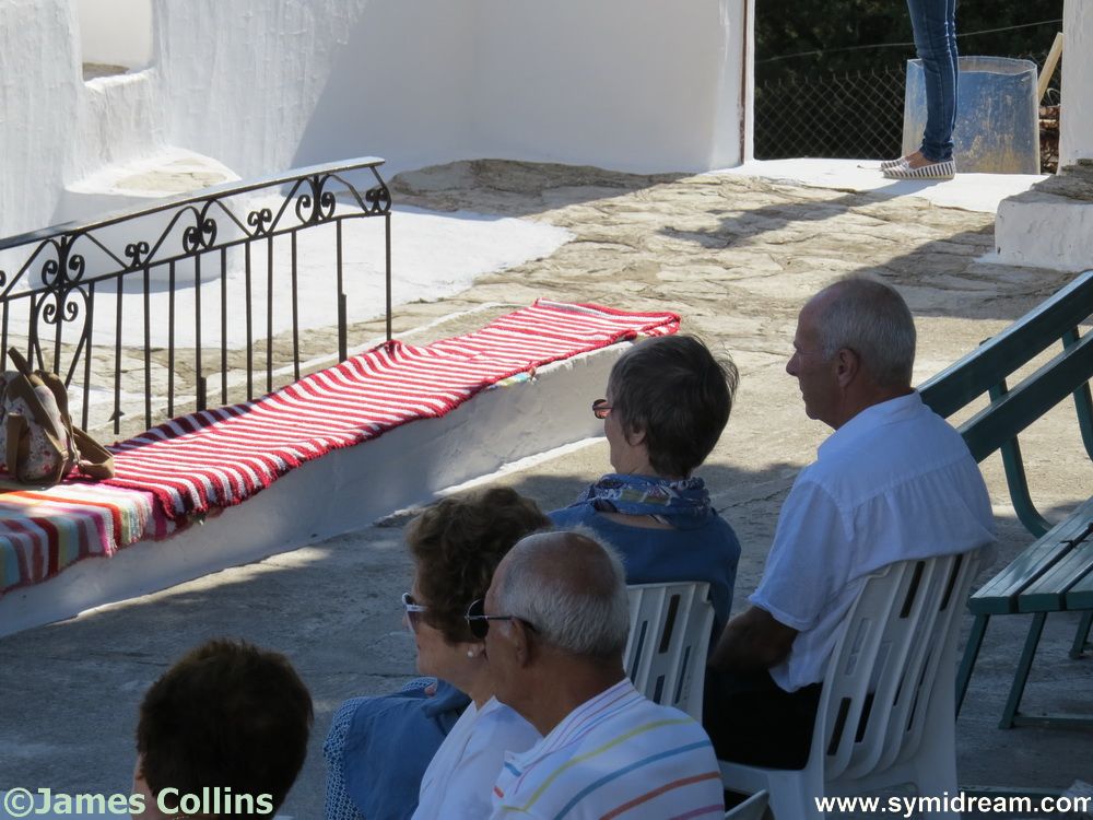 Some more photos, in random order, from last weekend’s festival at Kokimedes. Everyone and anyone is welcome to attend these festivals, and we were made very welcome. Manolis came from the kitchen to make sure we had arrived and had a seat, and later made sure we had eaten and that we had been given beer. Very fit old ladies were up and down steps with plates of lamb and kritheraki (rice shaped pasta) and salad for lunch, others gave you biscuits and coffee, speaking a little English when they realised we were not Greek, and there were even goody bags to take home and give to anyone we knew who couldn’t be there. Neil has a doughnut and a cheese pie in the fridge that we brought back for him.