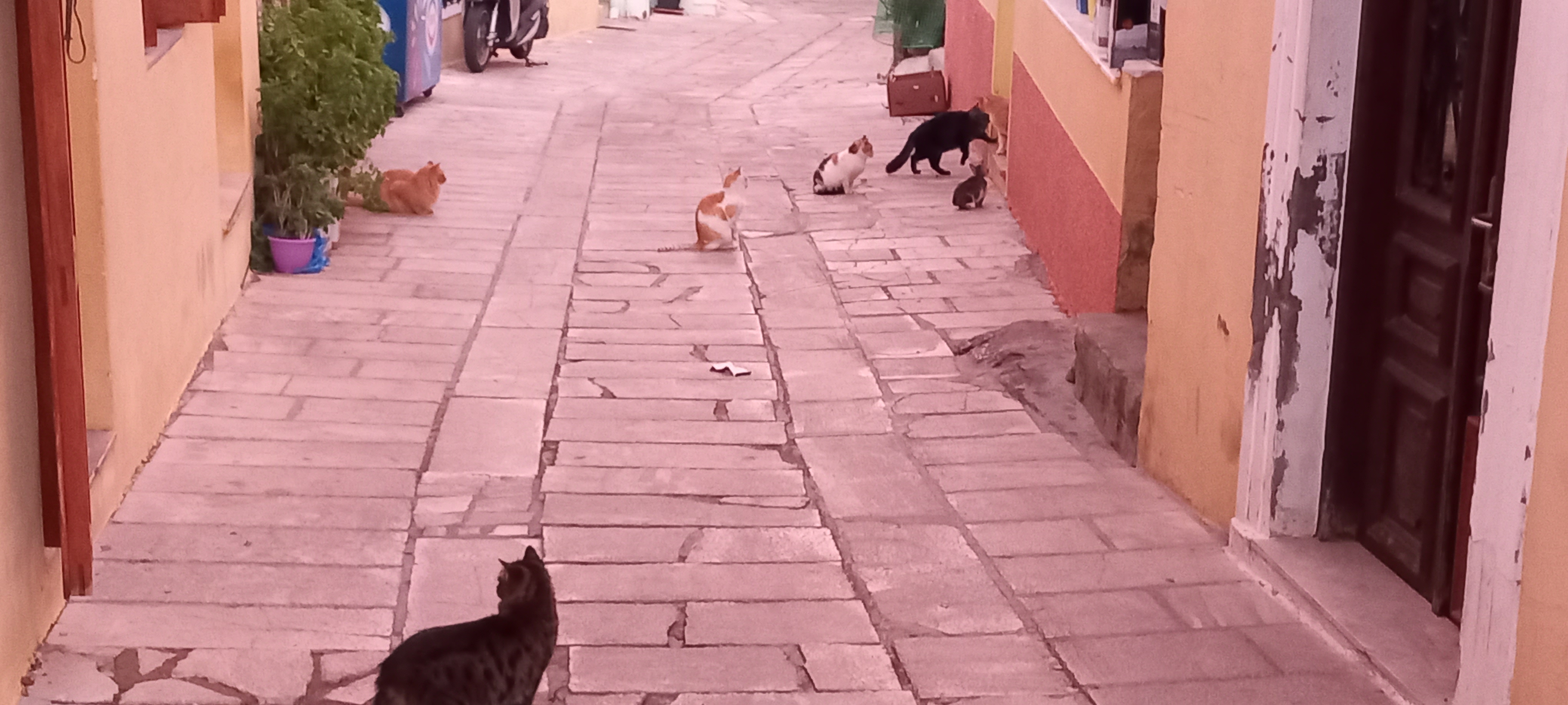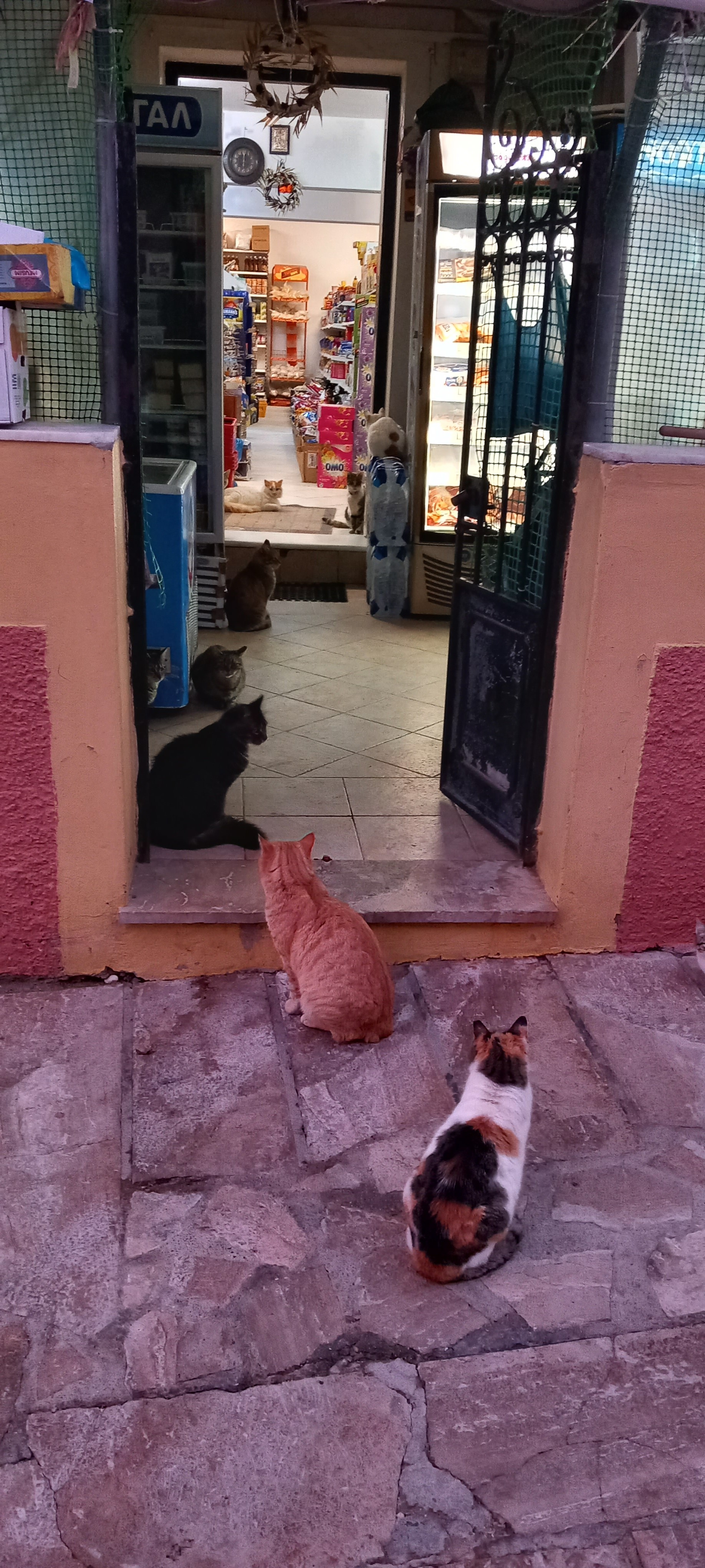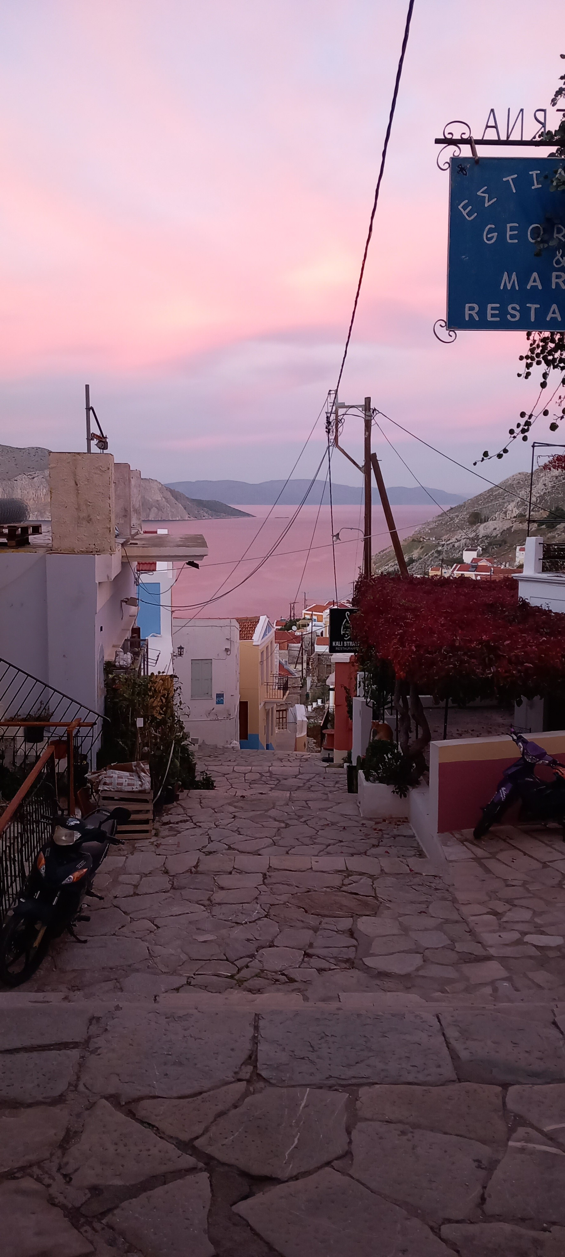 This isn’t an unusual sight, but it is a brief one as the colours change so quickly. Like most of my photos on the blog, they were taken on my phone, so are not the best quality, but I haven’t used any filters. We took an early evening walk around the village, and settled on a couple of glasses of wine at Lefteris Kafeneion before heading home, and on the way, we caught rush hour at the supermarket.