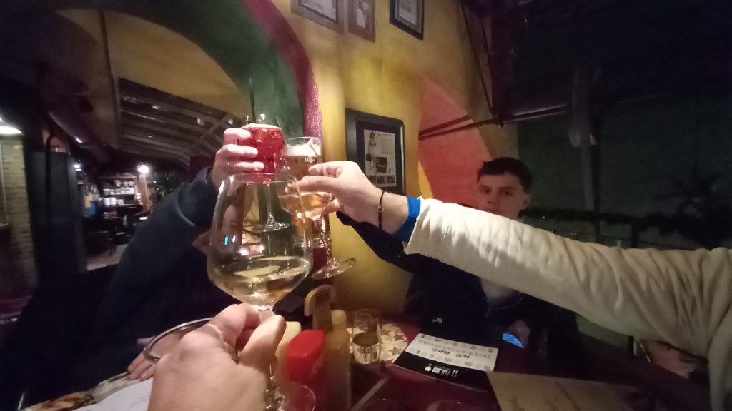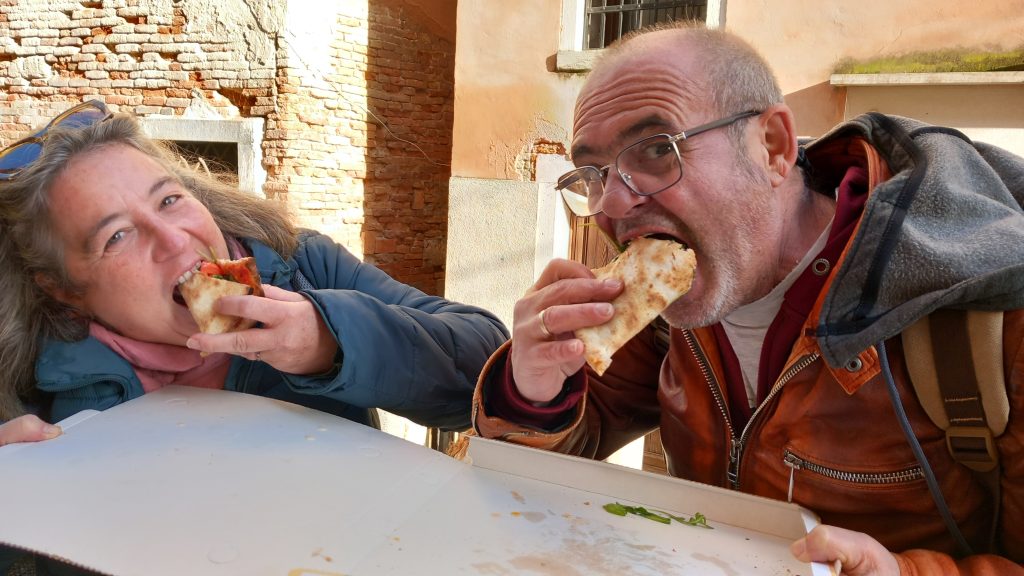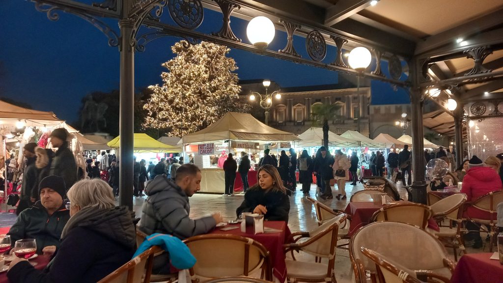 During the journey (I forget what train we were on, but it was before Christmas Day), we had Christmas carols playing on Jenine’s phone. We were in our own compartment, like old-fashioned corridor trains had, so we weren’t disturbing anyone, and there was no chance of being told off by a bullying Italian as it wasn’t a quiet carriage anyway. Whatever, this gave Neil and I the opportunity to present a little present. Having found Michael Bauble’s version of Silent Night on the phone, it played and we signed along in BSL. We’d only learnt the second verse the night before, so that was a bit touch and go, but we managed. Then, all four of us learnt the first verse, and from then on, every time we heard it playing throughout our journey, at least one of us would sign along.
