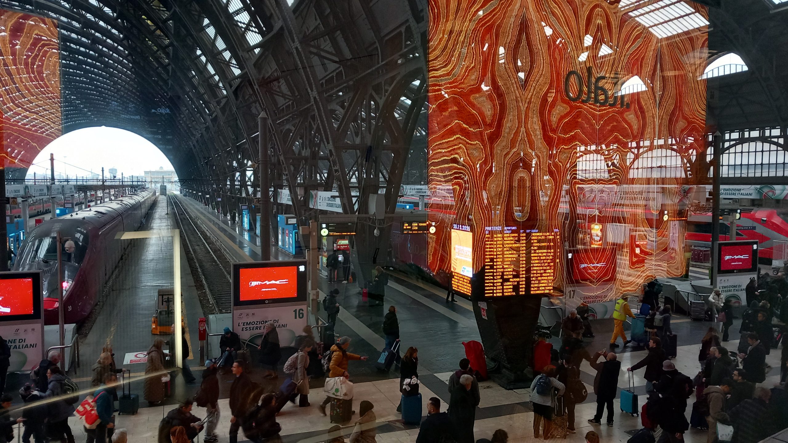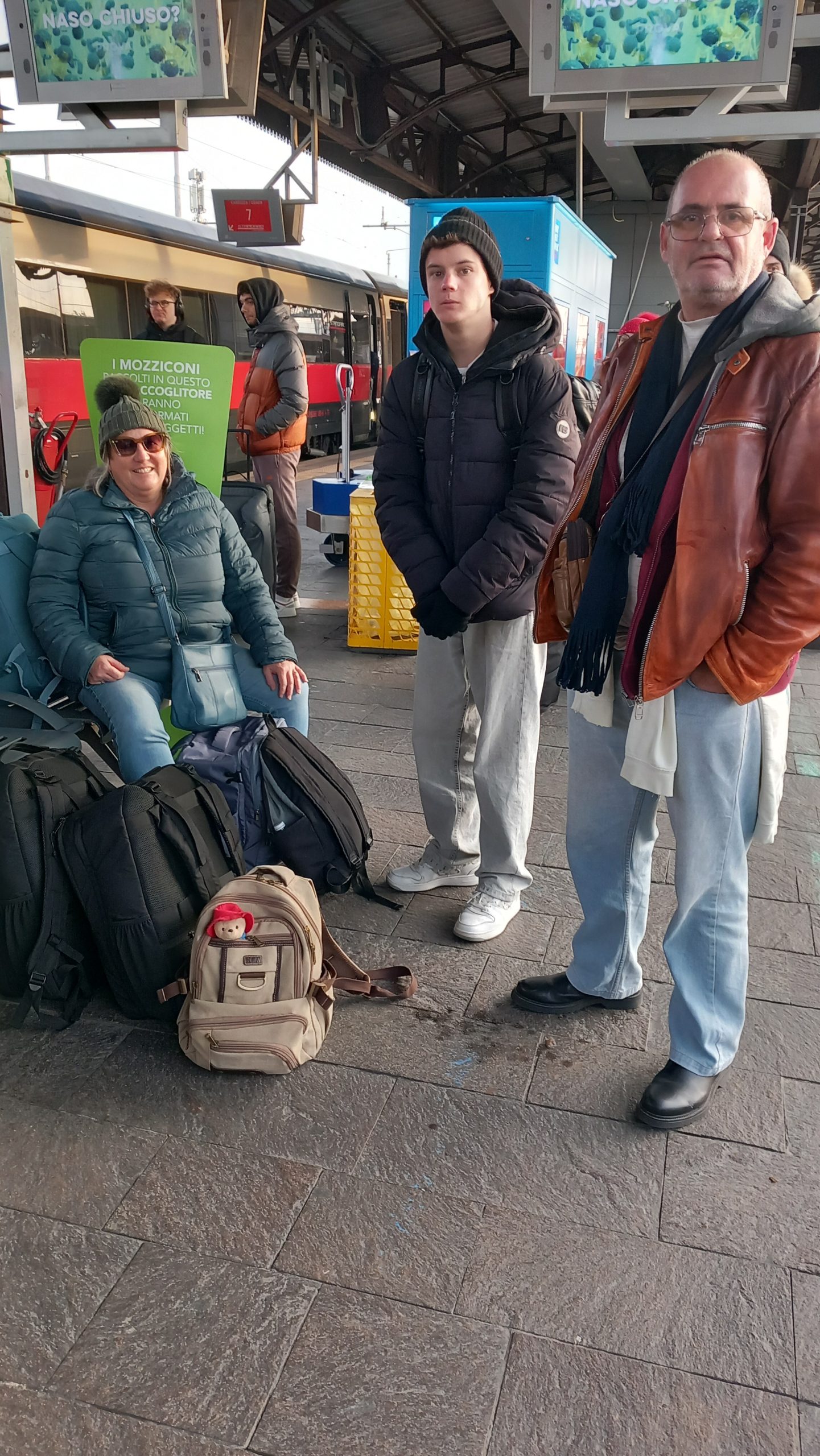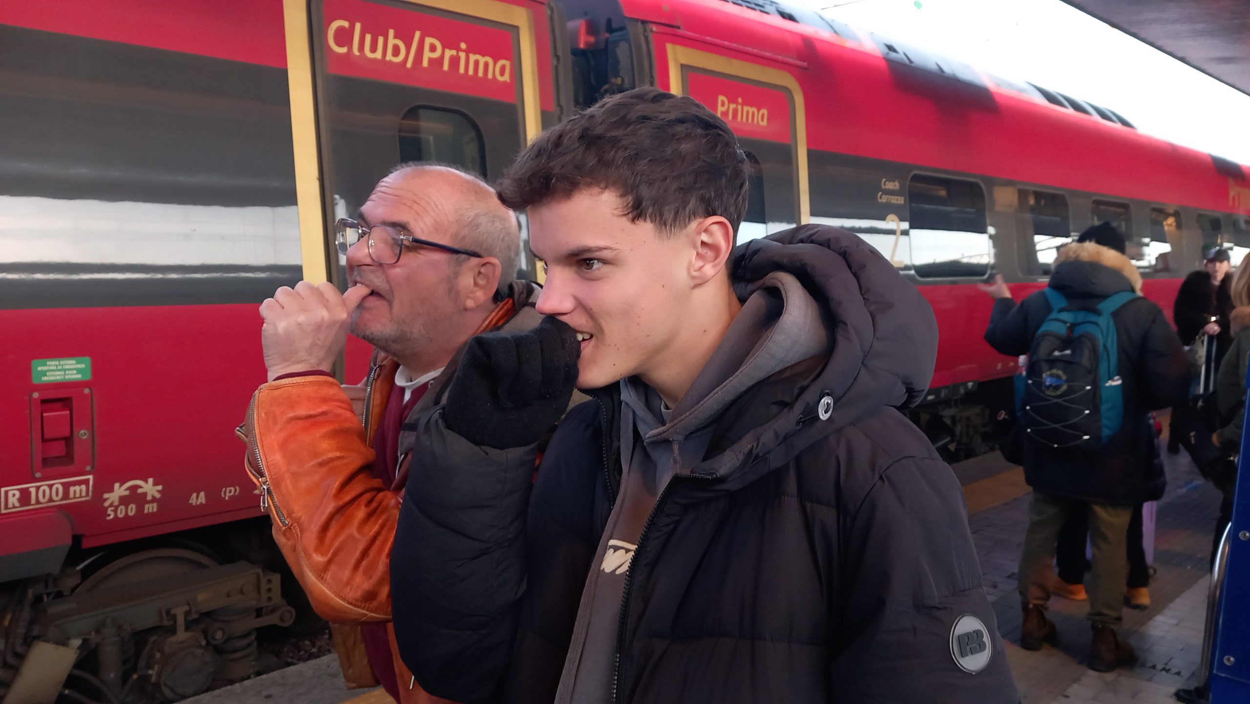 During the journey (I forget what train we were on, but it was before Christmas Day), we had Christmas carols playing on Jenine’s phone. We were in our own compartment, like old-fashioned corridor trains had, so we weren’t disturbing anyone, and there was no chance of being told off by a bullying Italian as it wasn’t a quiet carriage anyway. Whatever, this gave Neil and I the opportunity to present a little present. Having found Michael Bauble’s version of Silent Night on the phone, it played and we signed along in BSL. We’d only learnt the second verse the night before, so that was a bit touch and go, but we managed. Then, all four of us learnt the first verse, and from then on, every time we heard it playing throughout our journey, at least one of us would sign along.