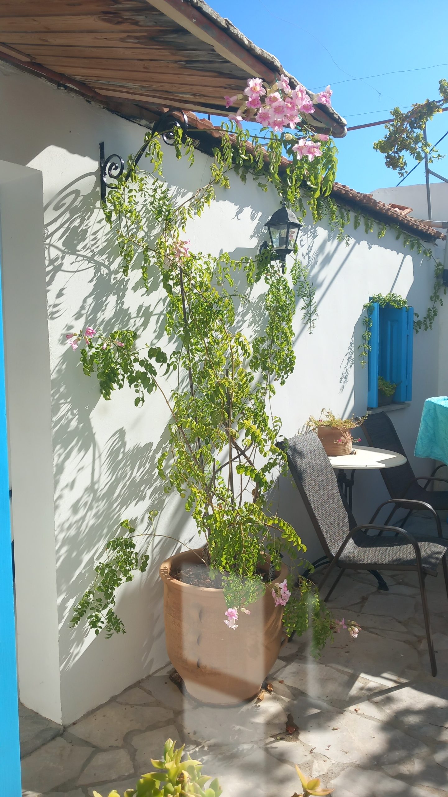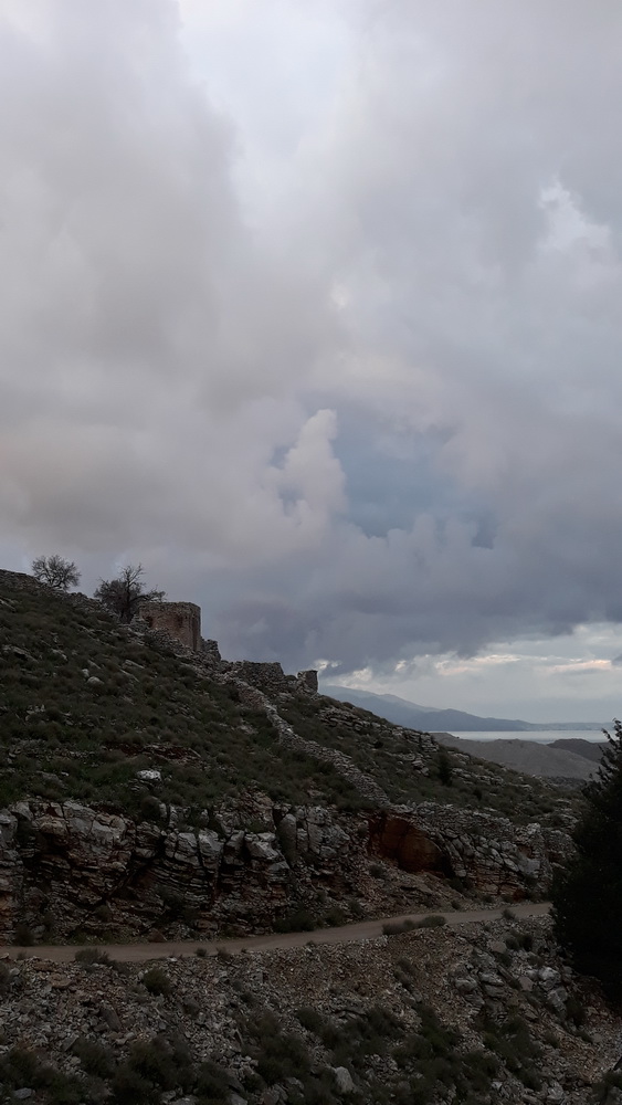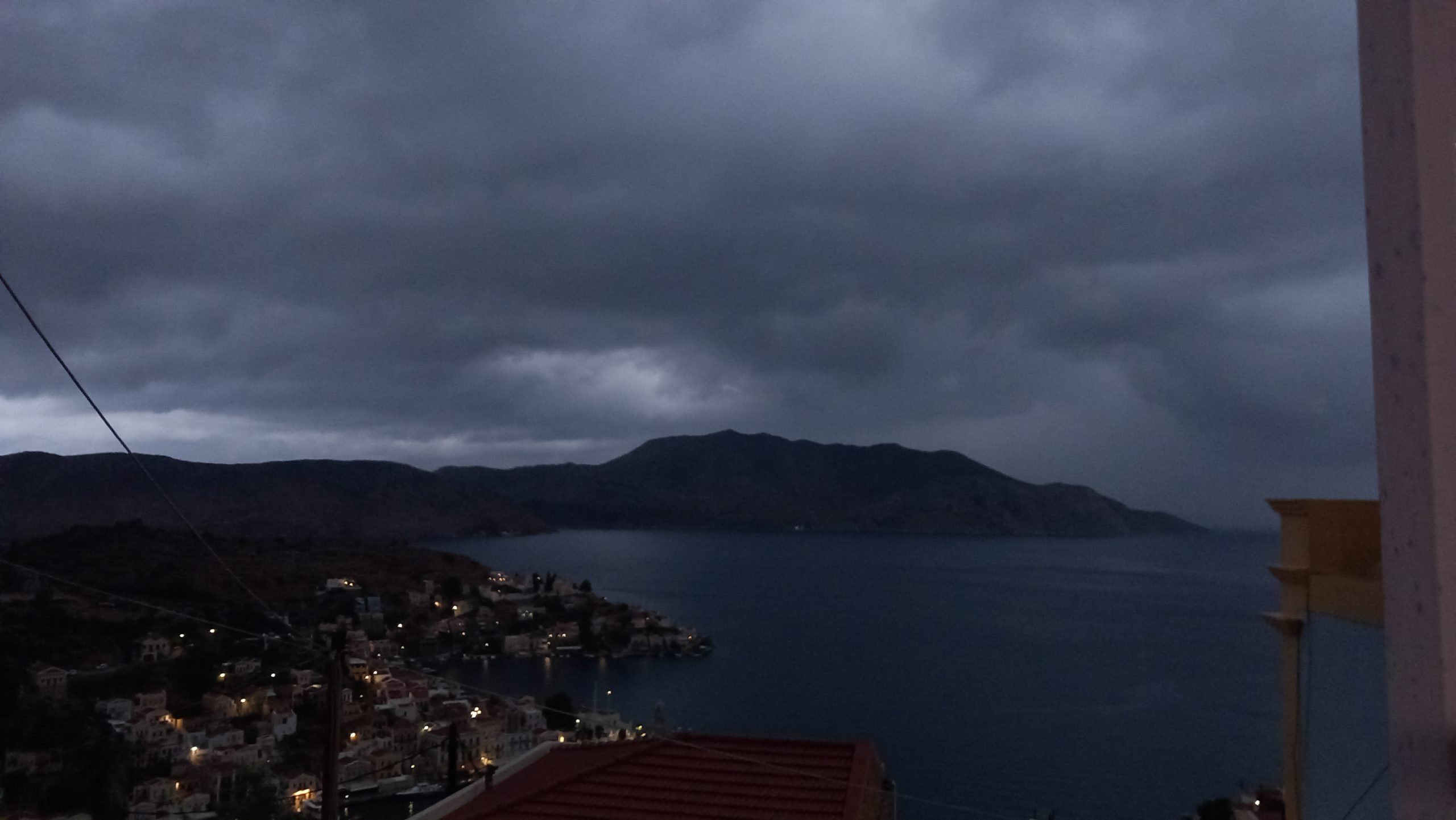 We’ve had a fabulously wet couple of days, the plants are thriving, the courtyard is a mess of fallen leaves and some flowers, and will be swept when dry, and Neil is traipsing down to Yialos this morning to get me some tablets and collect something from ACS while I battle on with the next story. The square and village were fairly busy yesterday afternoon and early evening, which is good to see, and there are still several day trip boats coming in every day, so the season’s not done yet.