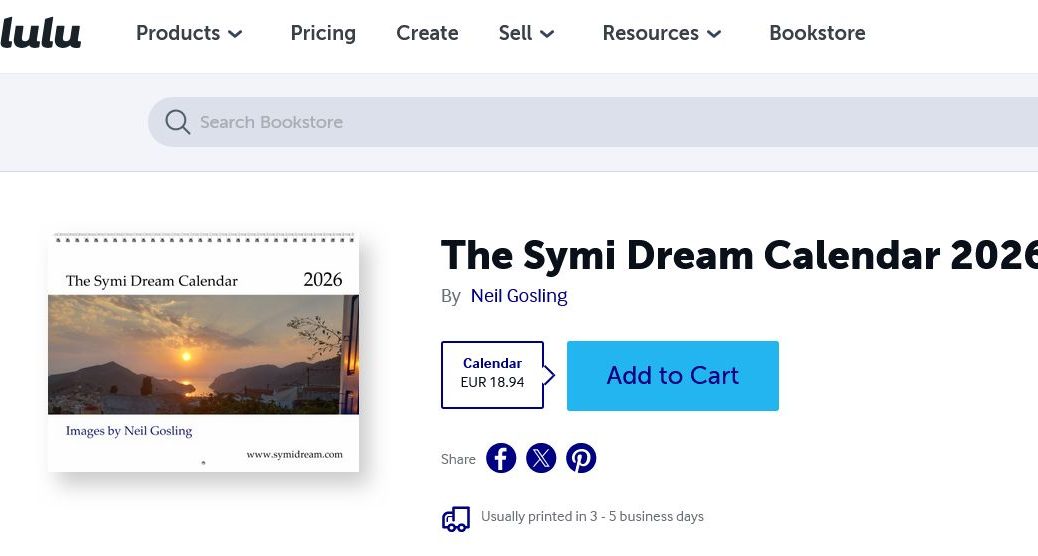 The third job of the day is to remind you about the unique Symi calendar that you can only order from Lulu.com. This link, Symi Dream Calendar will take you there. As the blurb says, The Symi Dream Calendar 2026 This exclusive Symi calendar gives you 12 photos of Symi, an island in the Dodecanese, Greece. Includes views of Yialos, Pedi, Nimborio, Ag. Vasilis, Horio and Panormitis.