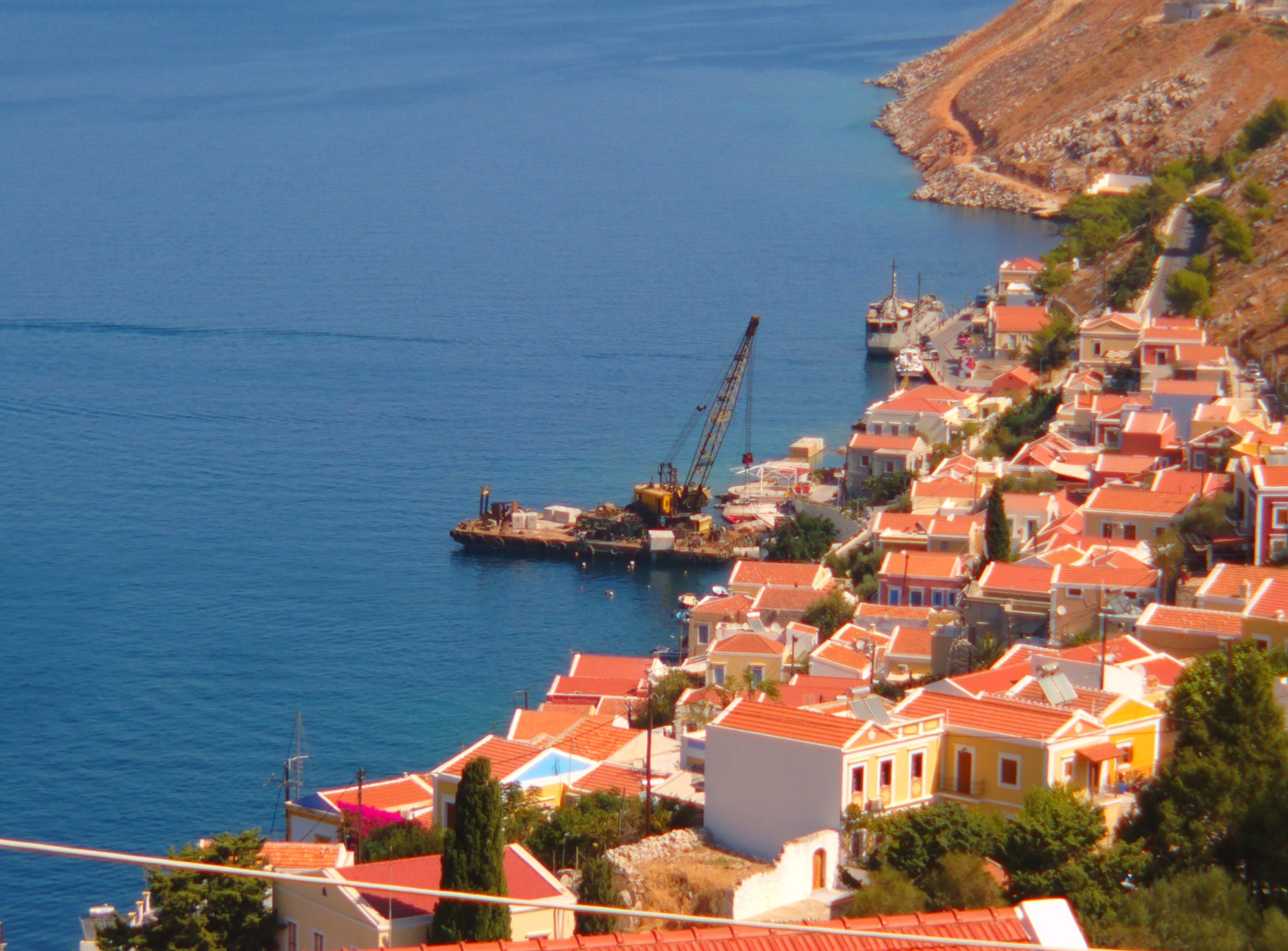 Another question seen and heard: Where can I get a taxi down to Yialos? Yialos. Can you ring me one? No. Why? A) I don’t have the numbers, B) They are usually reluctant to drive up to collect from the village unless prearranged. C) It’s four in the afternoon, you’ll be lucky. D) Take the bus.