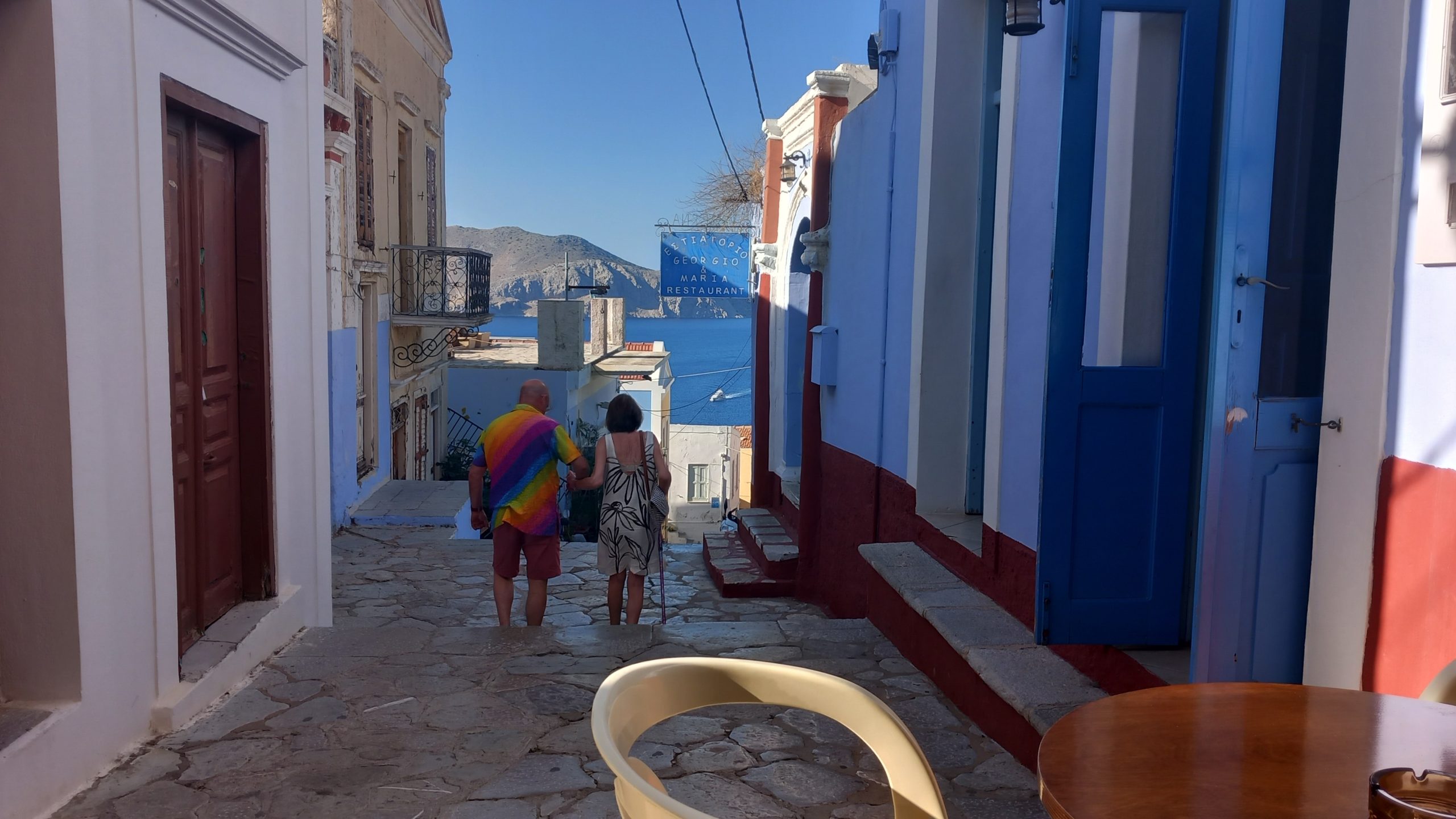 You’ll need a lie down after all that, and on most beaches on Symi, you can do just that. How much you will pay, whether you will be on one of the new tier-and-tariff systems, paying X amount for a back row, or taking out a mortgage for the front row, or packed somewhere mid-stalls with no privacy or view, well… that depends on the beach. Whether you get your own personal torture device for free as long as you spend X amount in the café bar or restaurant depends on where you are. Whether you get a bamboo shade that leaves you with a burlap tan, or a collapsible umbrella (the use of which is the subject of an optional instruction manual), or whether you have one of those ‘set-in-a-concrete block and don’t you dare move it’ affairs, all depends on where you are.
