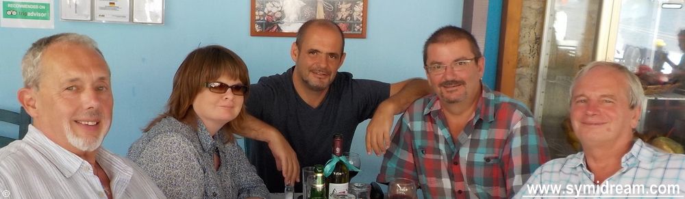 But, and here’s one of those, ‘What is it about Symi that makes you want to stay?’ questions answered. On the way from birthday party to buffet, Neil went off to collect a package that had been left for him by the courier at The Sunrise – so there’s answer number one, courier services leaving your things with friends/neighbours/anyone who they know you know or else who speaks the same language, and said friends holding on to it for you until you can get there to collect it and not being inconvenienced; or if they are, then not saying so. And then part two of the answer: on arriving at Sotiris’ super market (sic) and (Jenine) being told that the join of pork she had requested from George had already been taken to her house and put in her downstairs freezer.